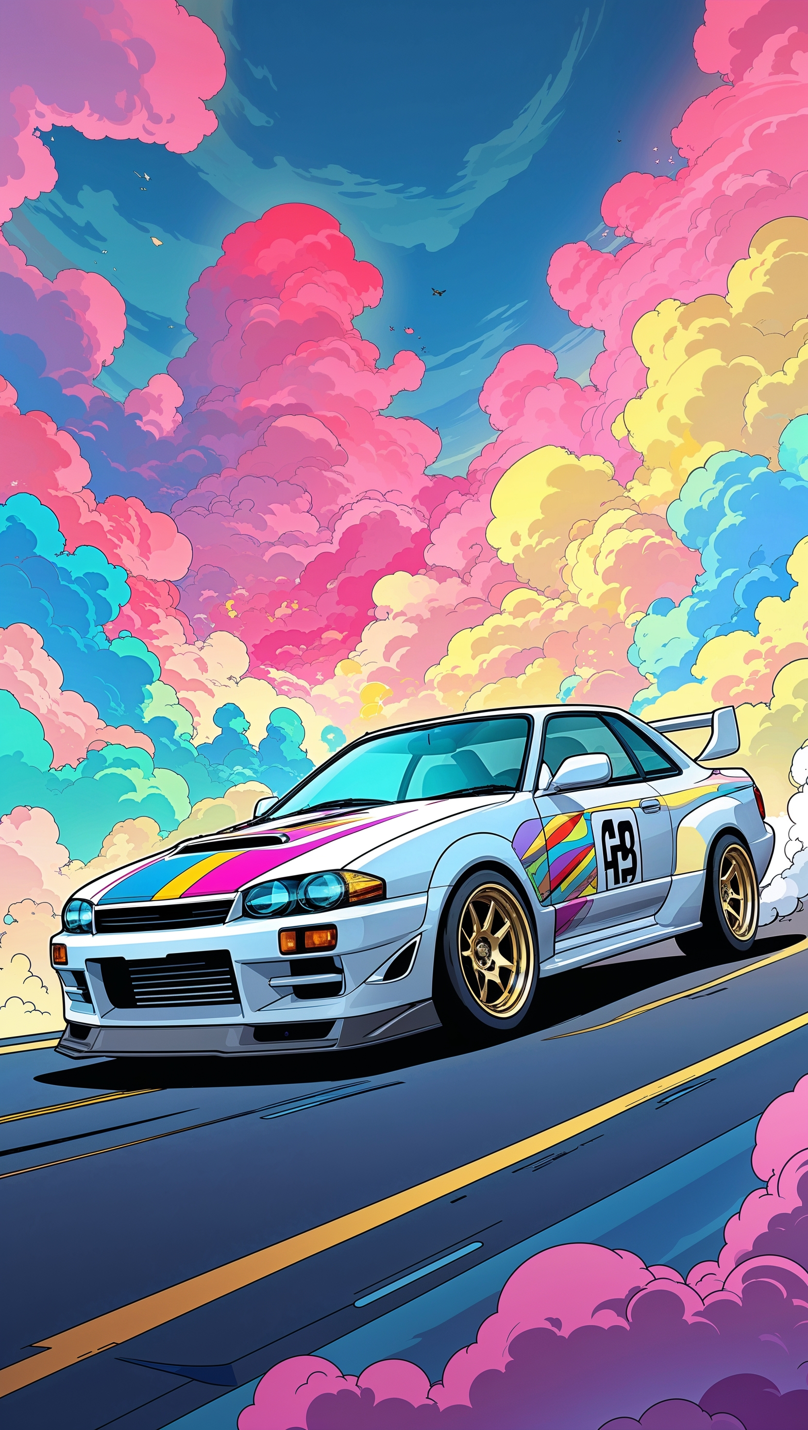 Cartoon style JDM car with colorful background 1664x2944 Cartoon style JDM car with colorful background