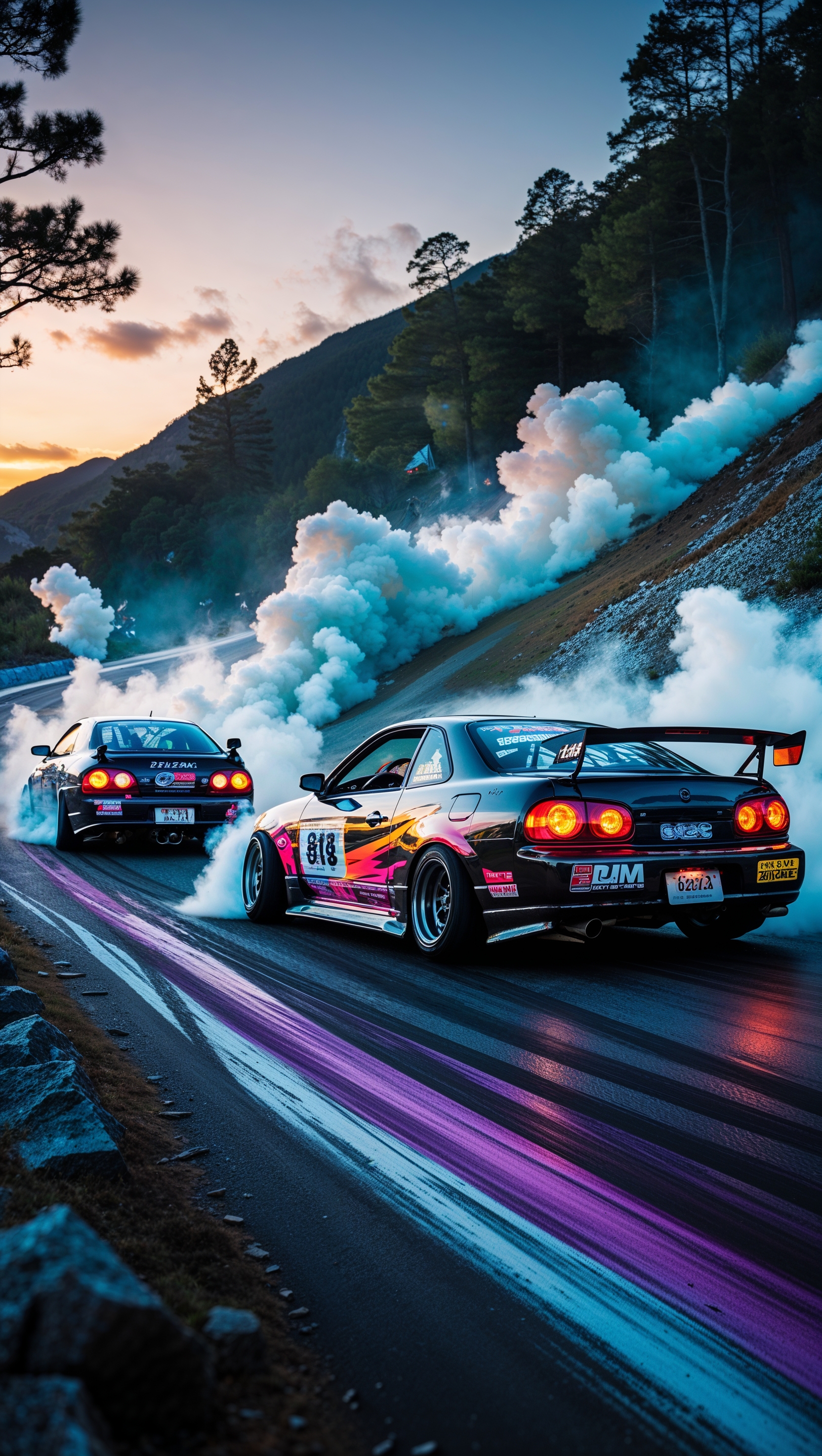 Drift race scene of two JDM cars with heavy smoke 1664x2944 Drift race scene of two JDM cars with heavy smoke