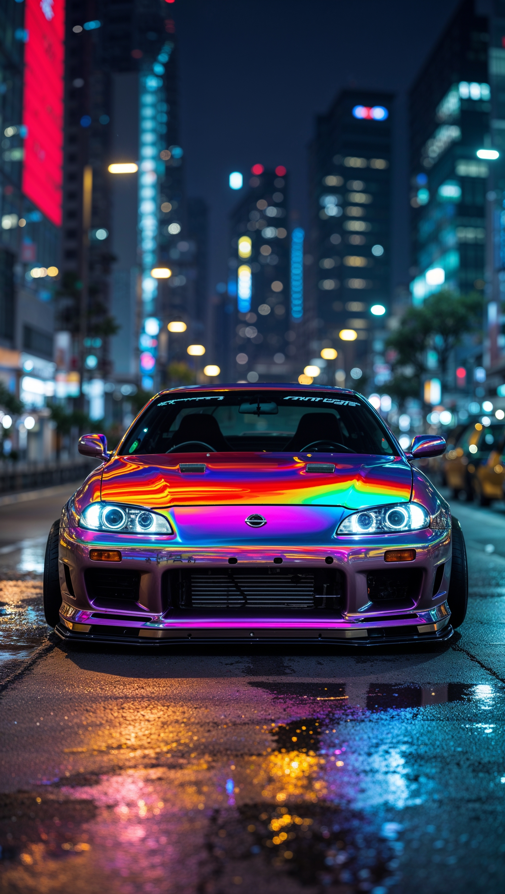 JDM car at night with rainbow reflections on surface 1664x2944 JDM car at night with rainbow reflections on surface