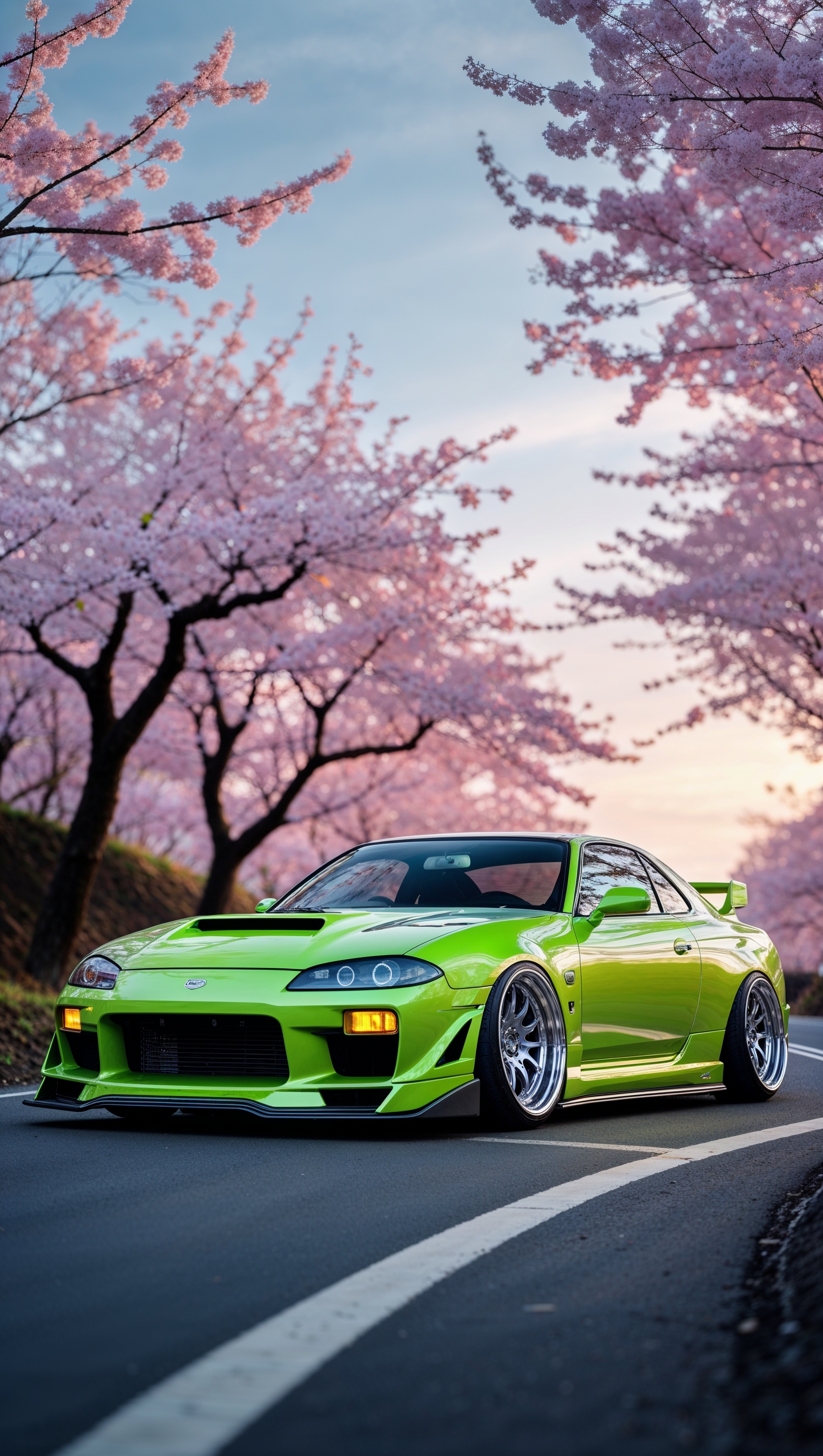 JDM car among Japanese cherry blossom trees 1664x2944 JDM car among Japanese cherry blossom trees
