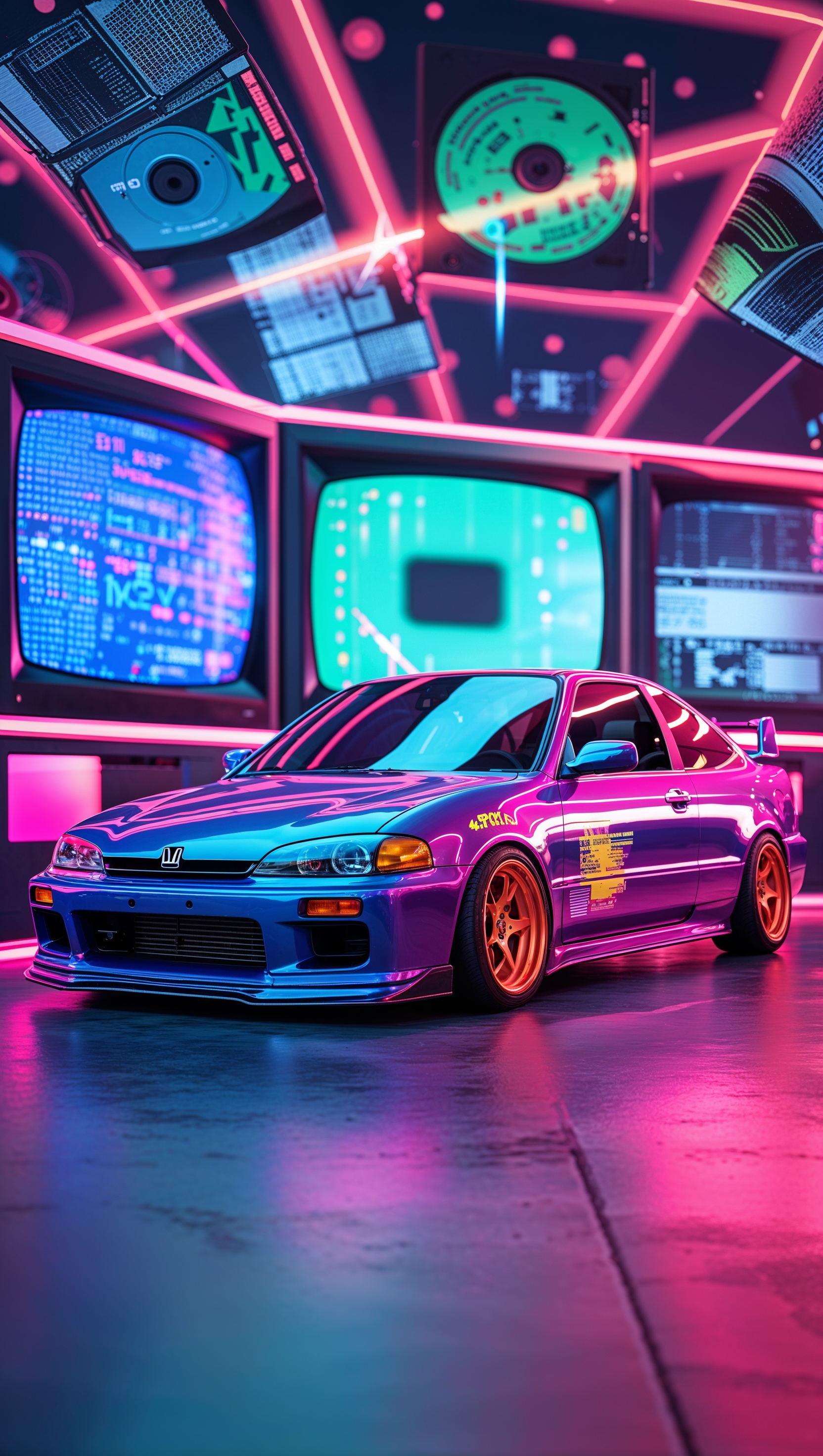 Retro 90s style JDM car with VHS background 1664x2944 Retro 90s style JDM car with VHS background