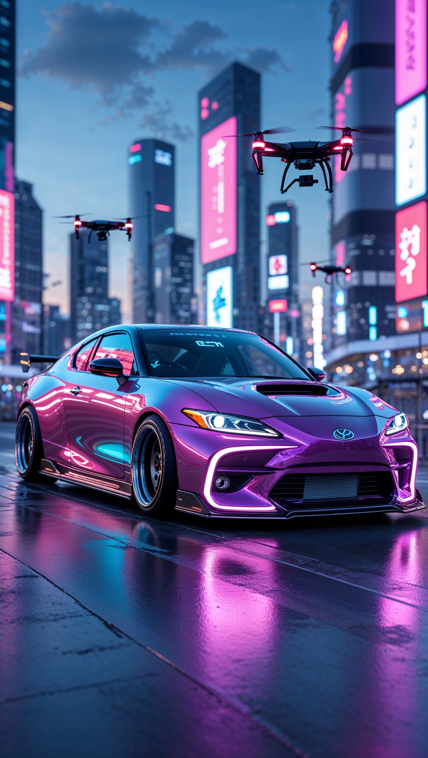 A JDM car at night in the rain with purple neon lights 1664x2944 A JDM car at night in the rain with purple neon lights