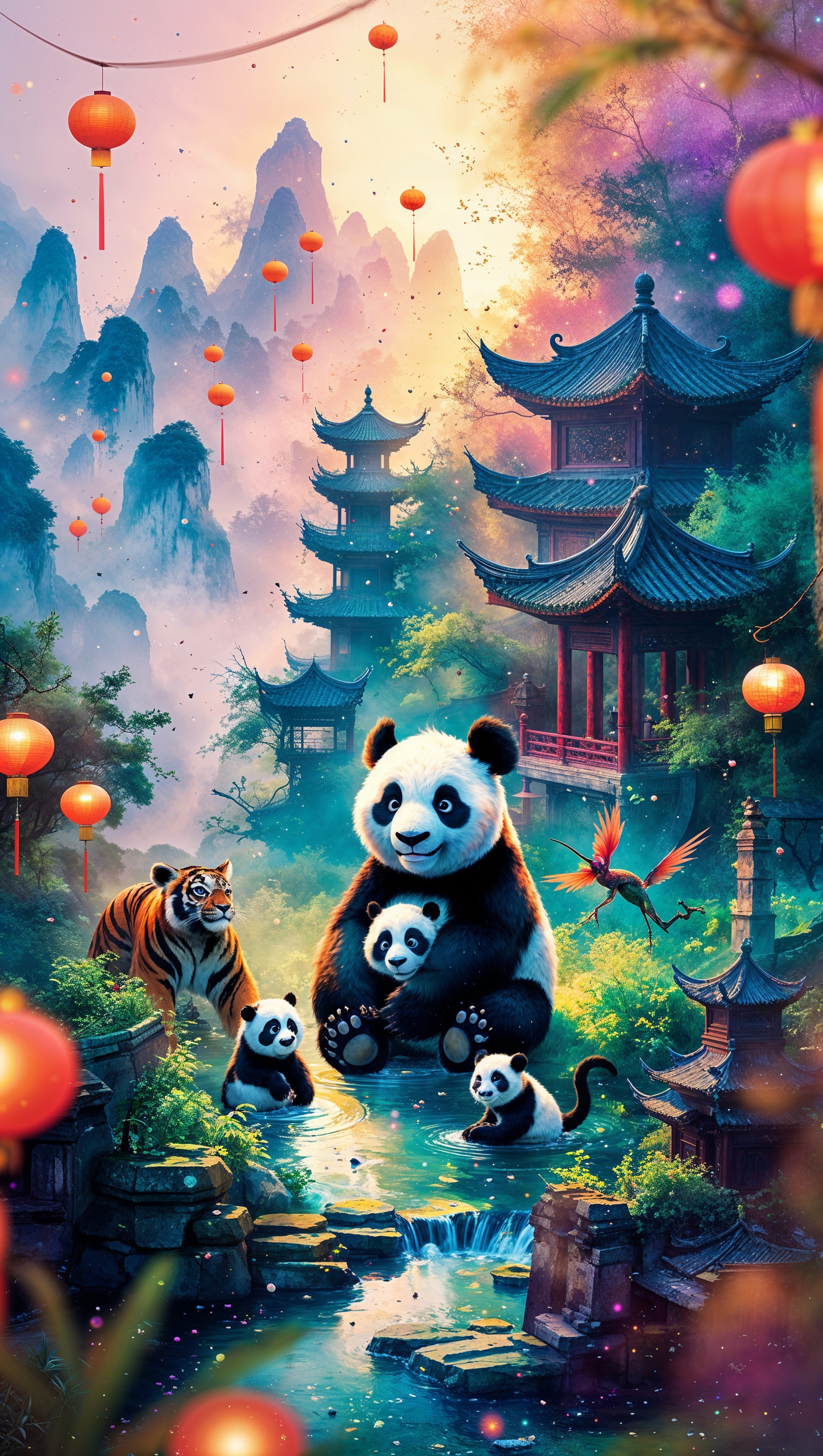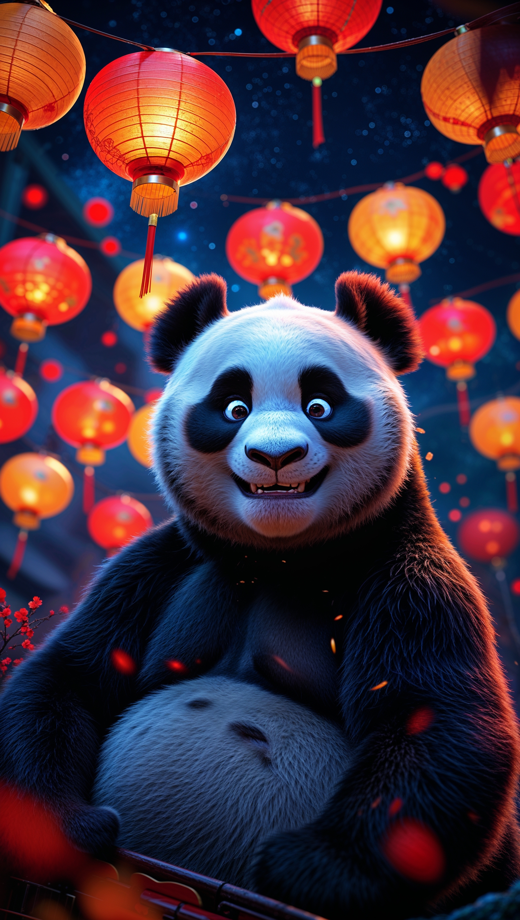 1664x2944 An artistic image of Po at night with glowing Chinese lanterns