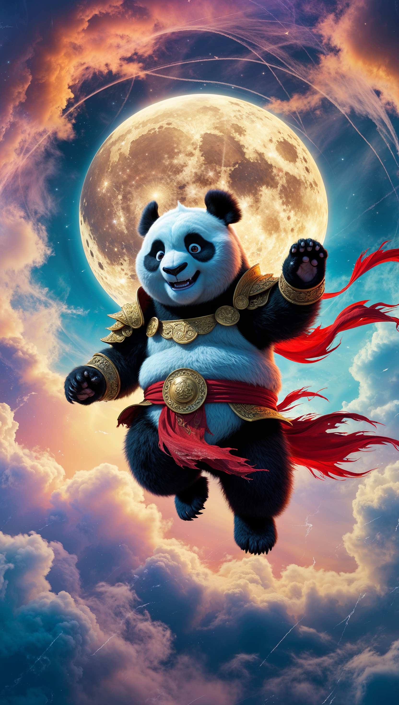 1664x2944 Po jumping with Dragon Warrior outfit against a full moon