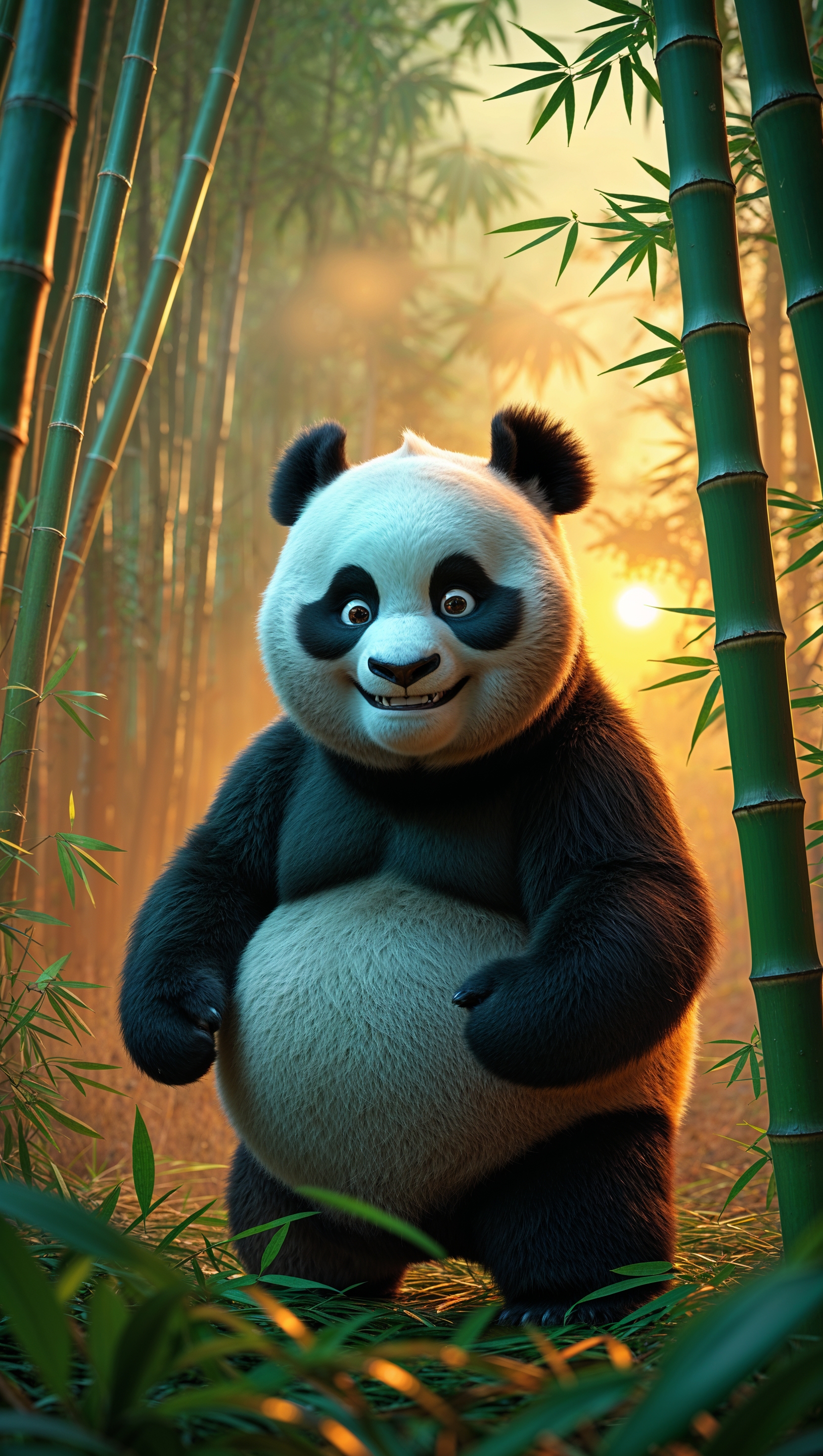 1664x2944 Po in a bamboo forest with golden sunset light