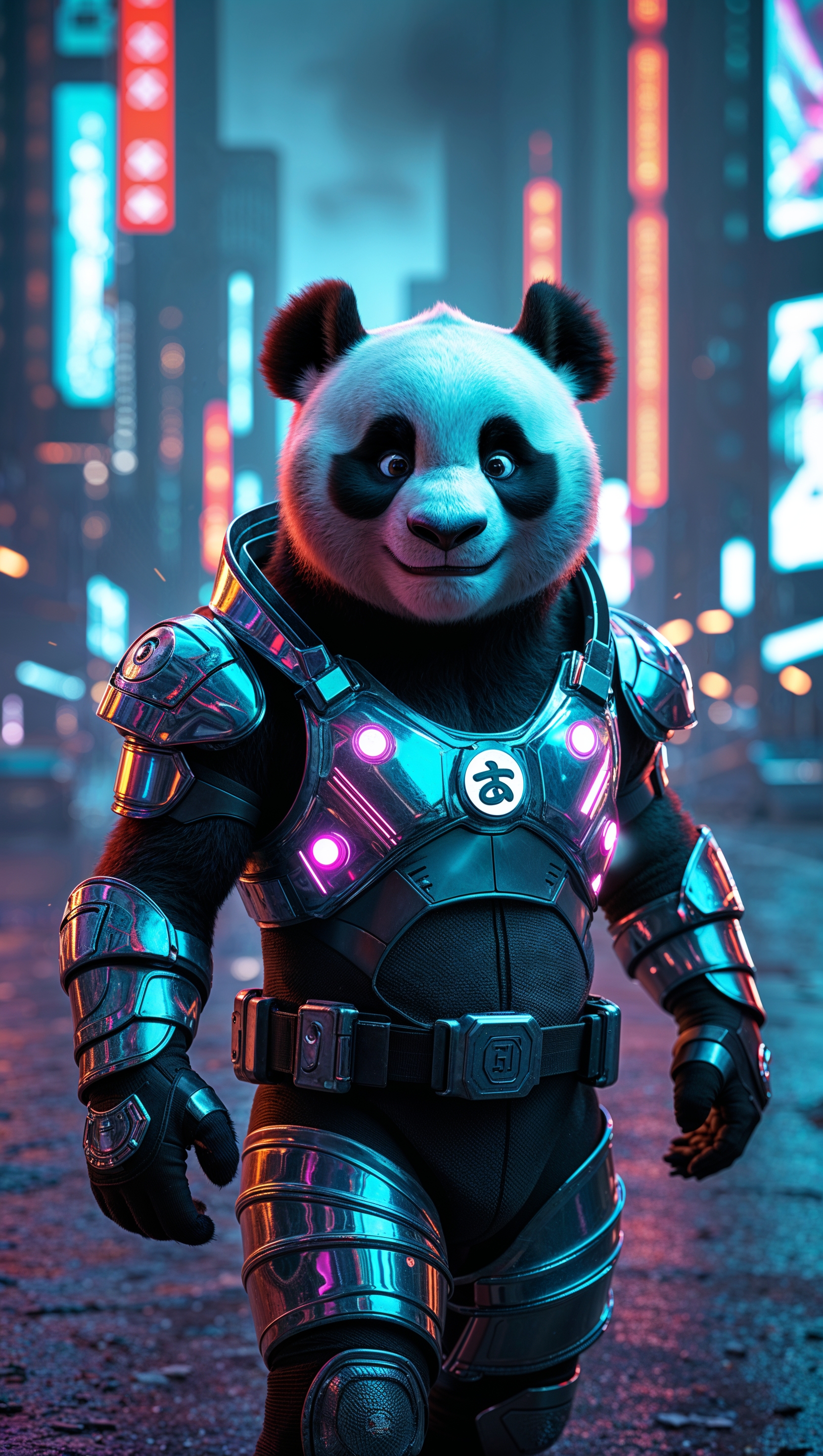 1664x2944 Po in a cyberpunk style with futuristic armor and neon lights