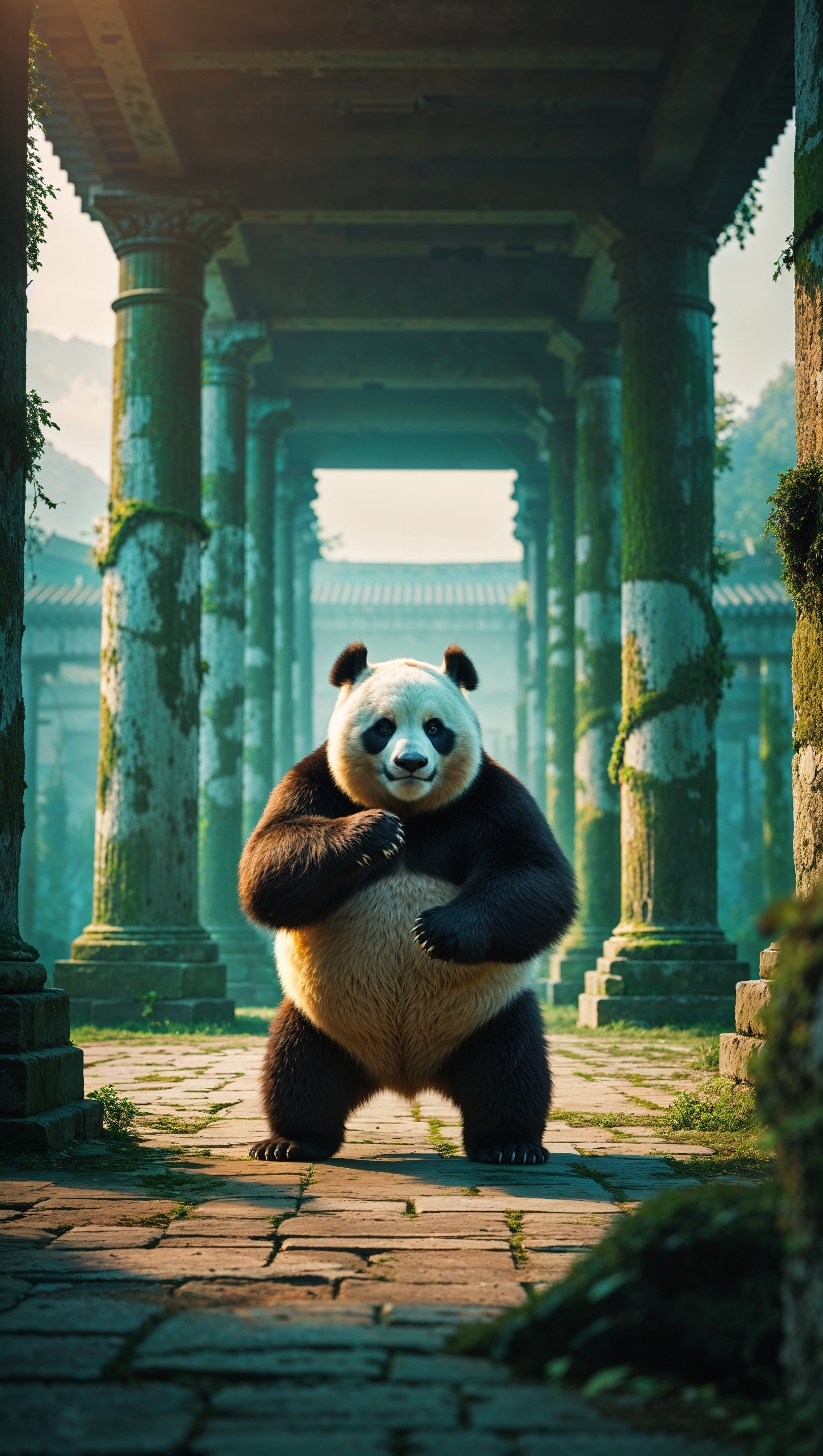 1664x2944 Po training in an ancient arena with old stone pillars