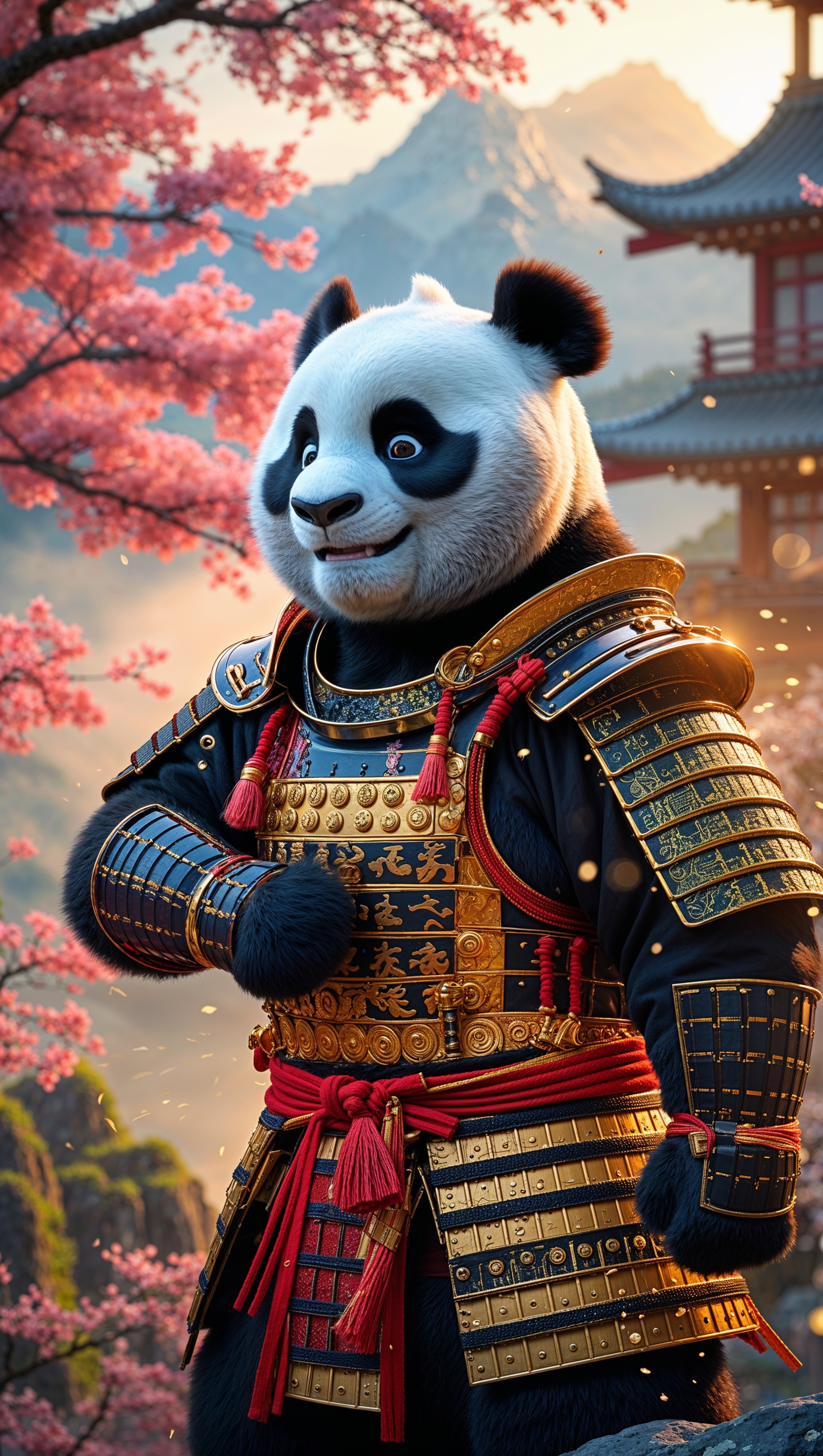 1664x2944 Po in a samurai world wearing traditional Japanese armor