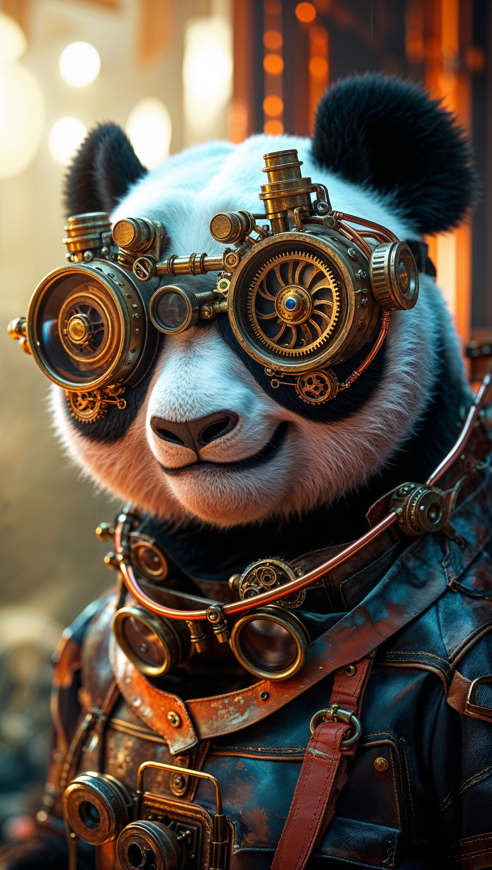 1664x2944 A steampunk version of Po with mechanical goggles and steam-powered gears
