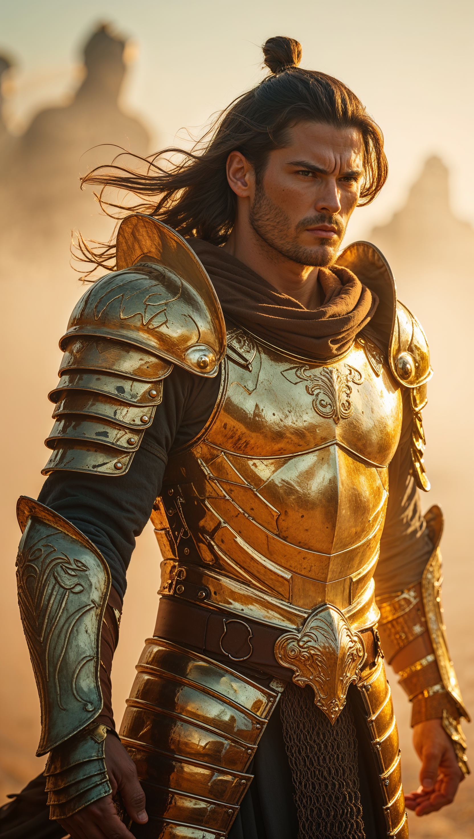 1664x2944 A 4K wallpaper of an invincible warrior with shining armor in golden light – iPhone