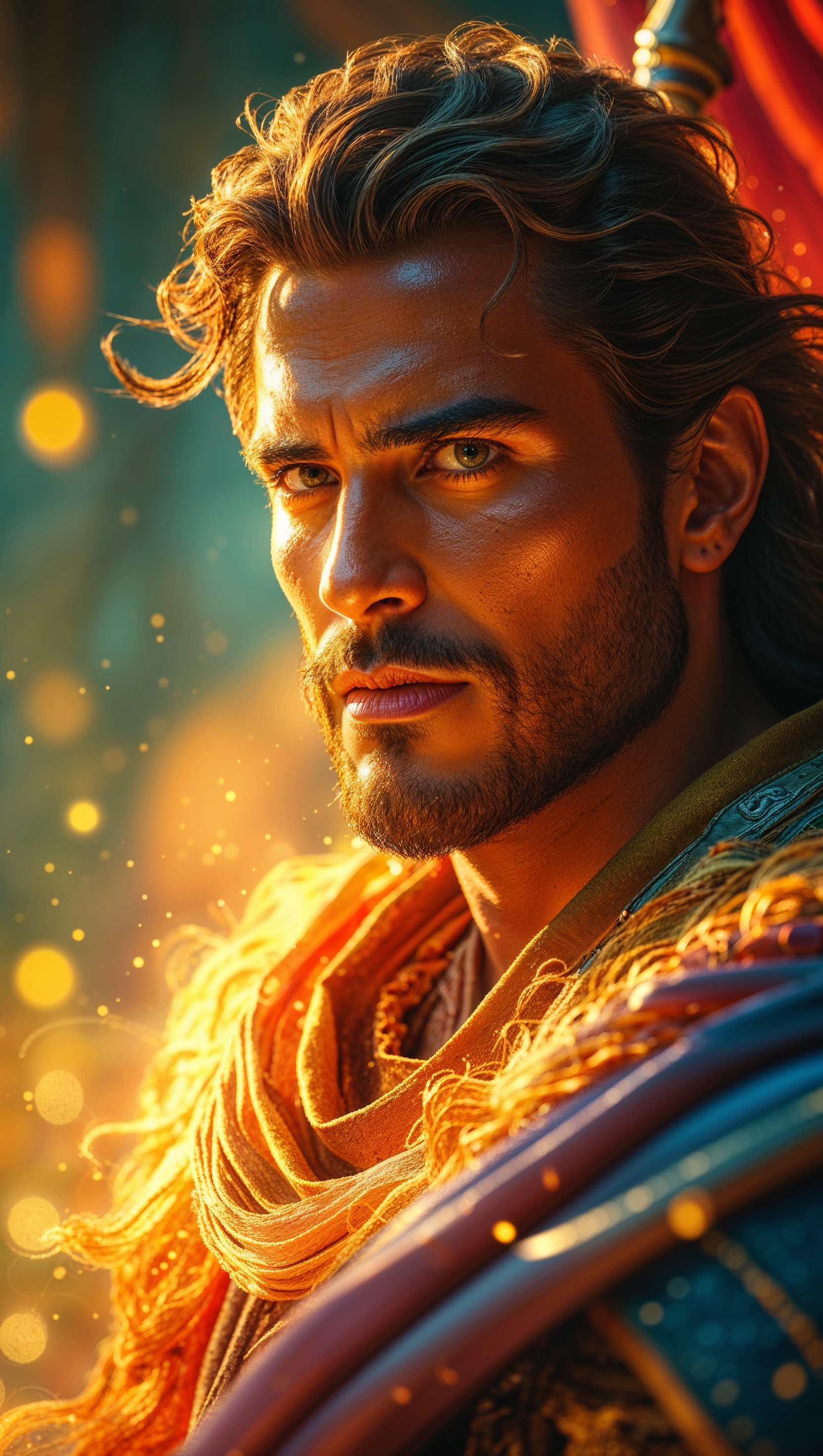 1664x2944 A digital painting of a legendary hero with golden glow, 4K iPhone wallpaper