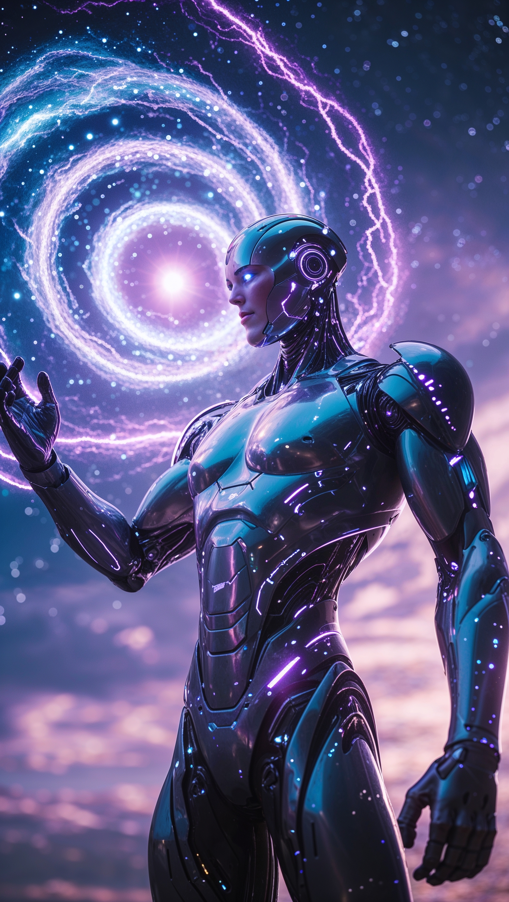 1664x2944 A cybernetic being wielding galactic energy, invincible – 4K iPhone