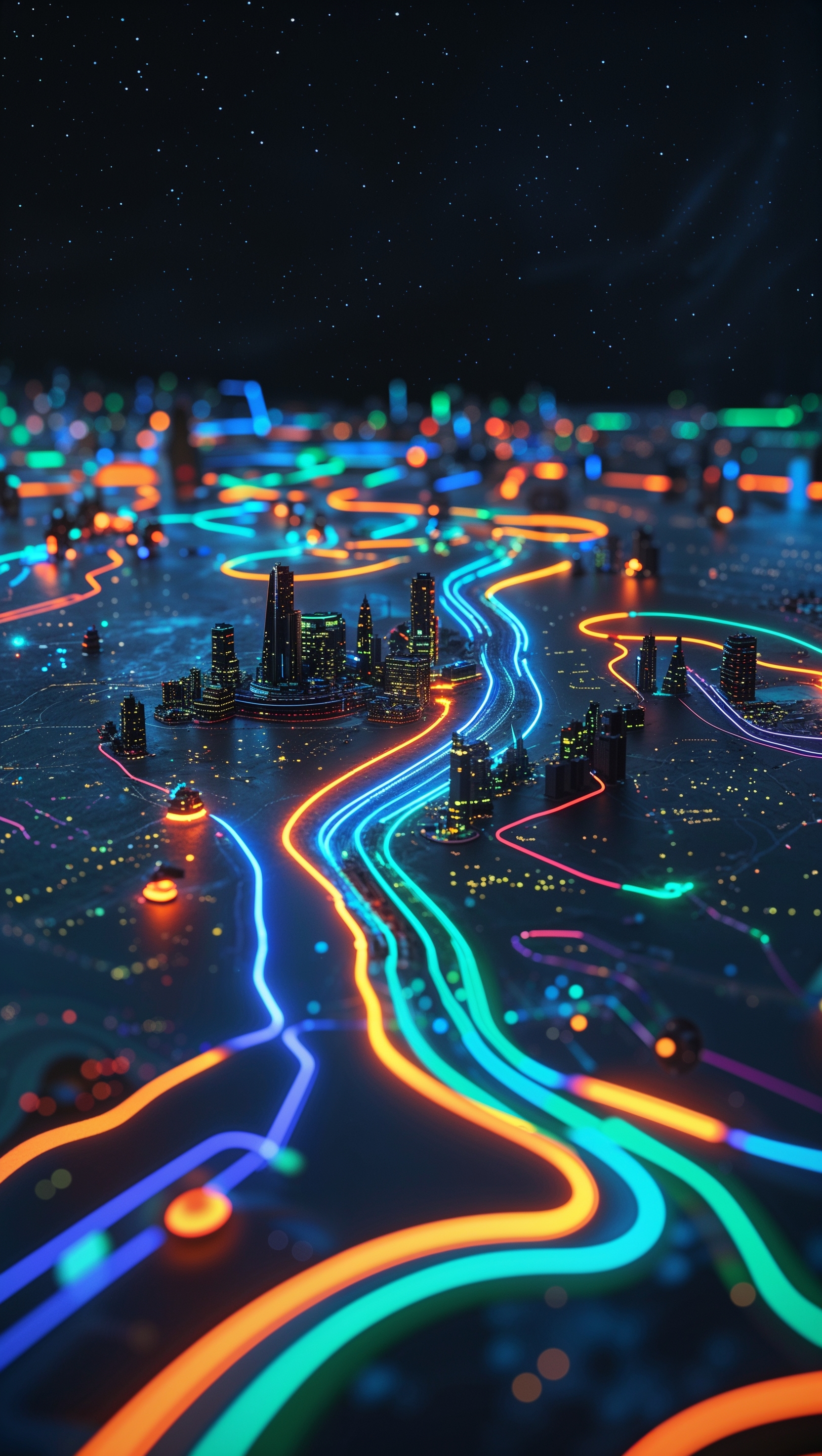 1664x2944 A map of an invincible space civilization with glowing cities – 4K iPhone wallpaper