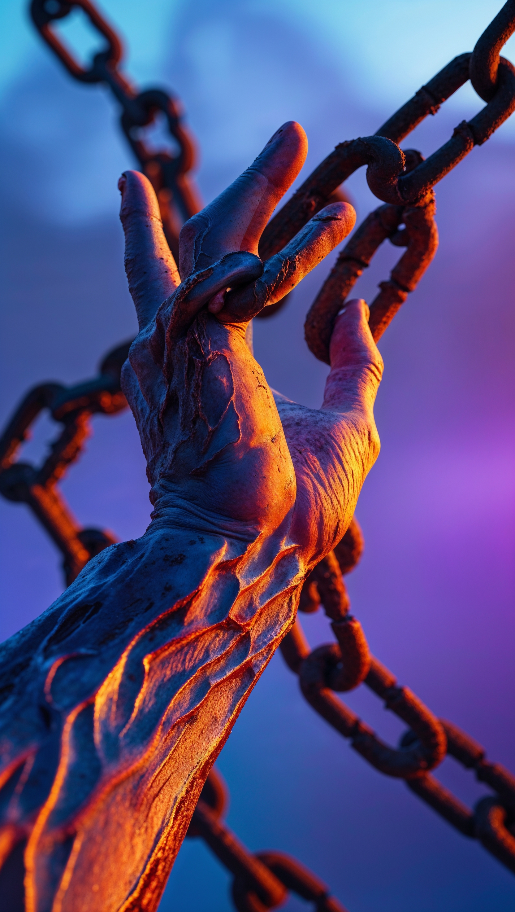 1664x2944 An artistic image of a hand breaking chains, symbolizing invincibility – 4K iPhone