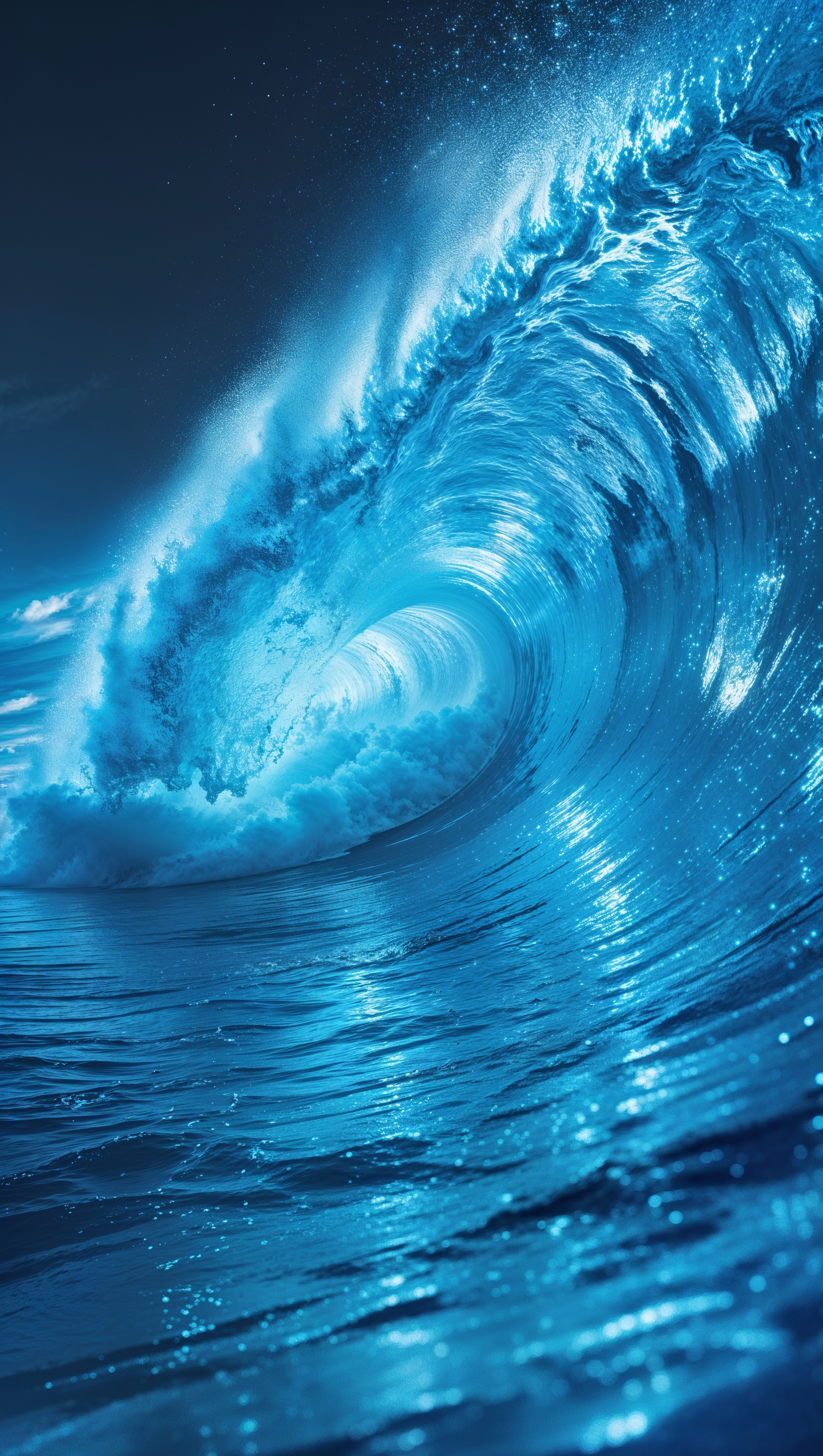 1664x2944 A wave of powerful blue light symbolizing invincible energy – 4K iPhone