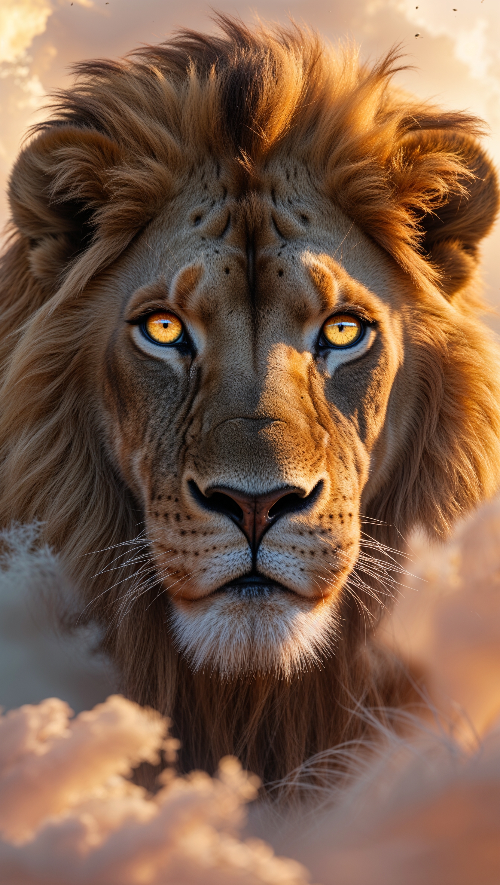 1664x2944 A lion’s gaze with golden eyes, symbol of invincible strength – 4K iPhone