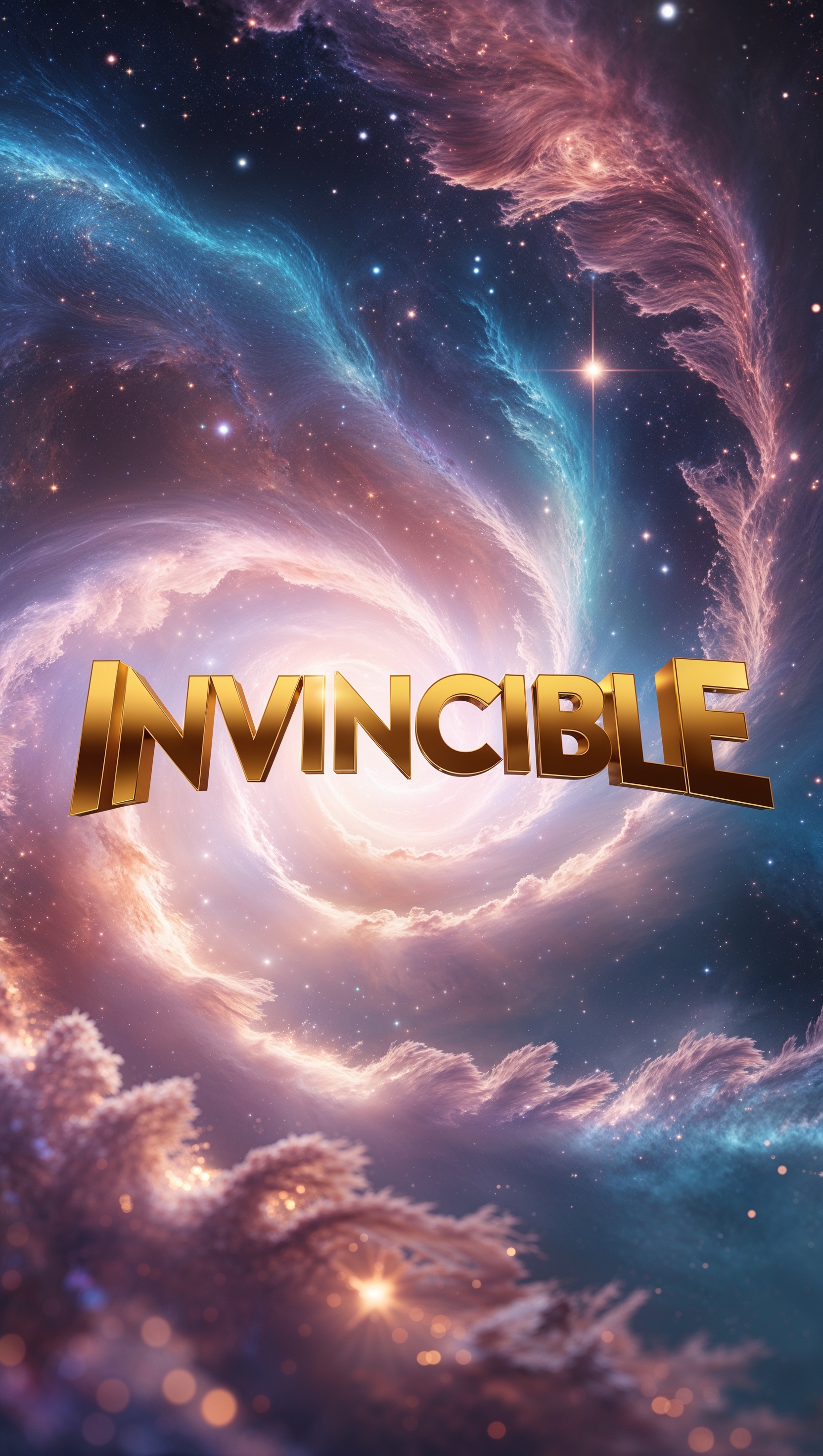 1664x2944 A glowing galaxy with the word "Invincible" in the center – 4K iPhone