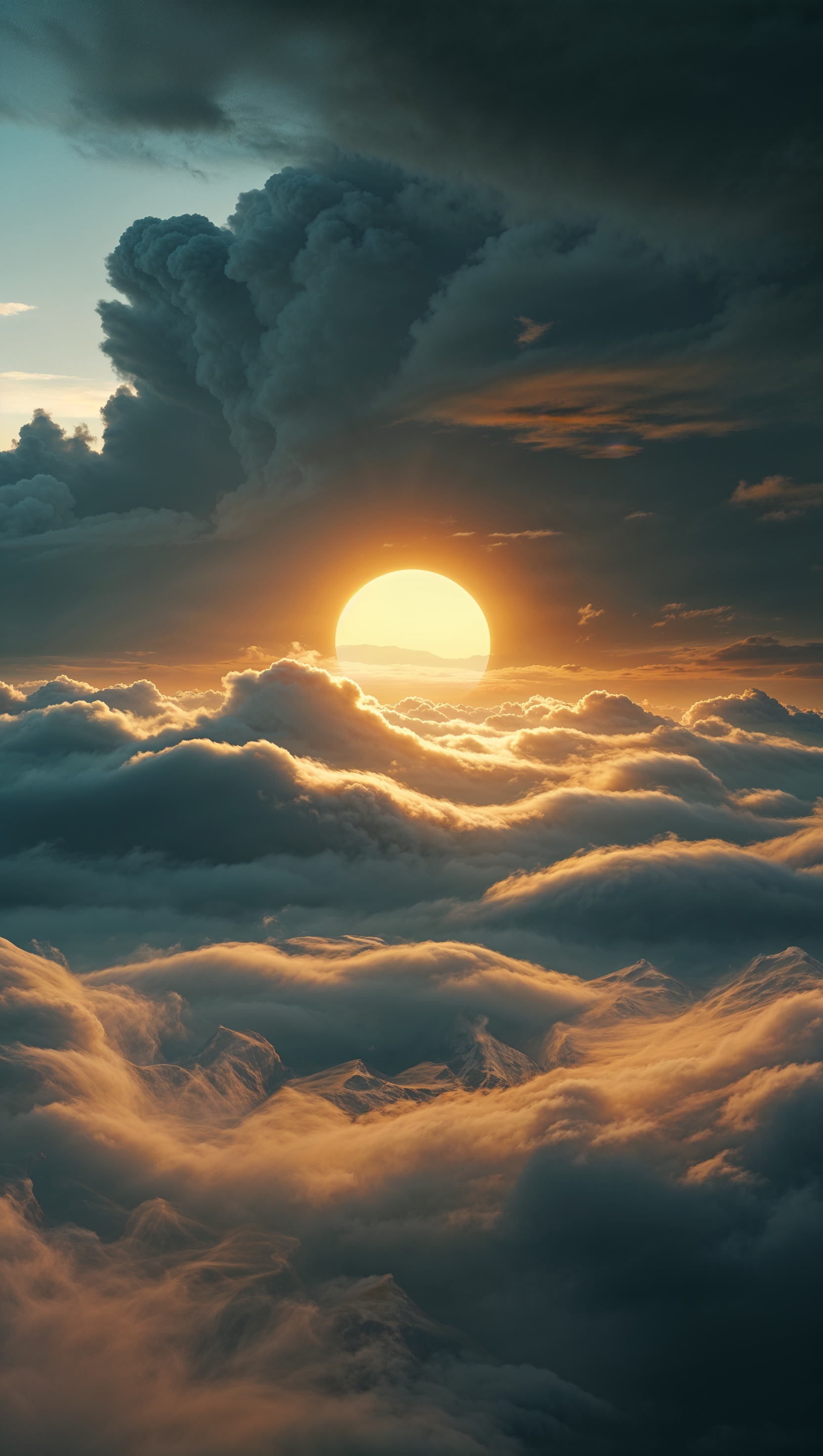 1664x2944 An invincible sun rising through dark clouds – 4K iPhone