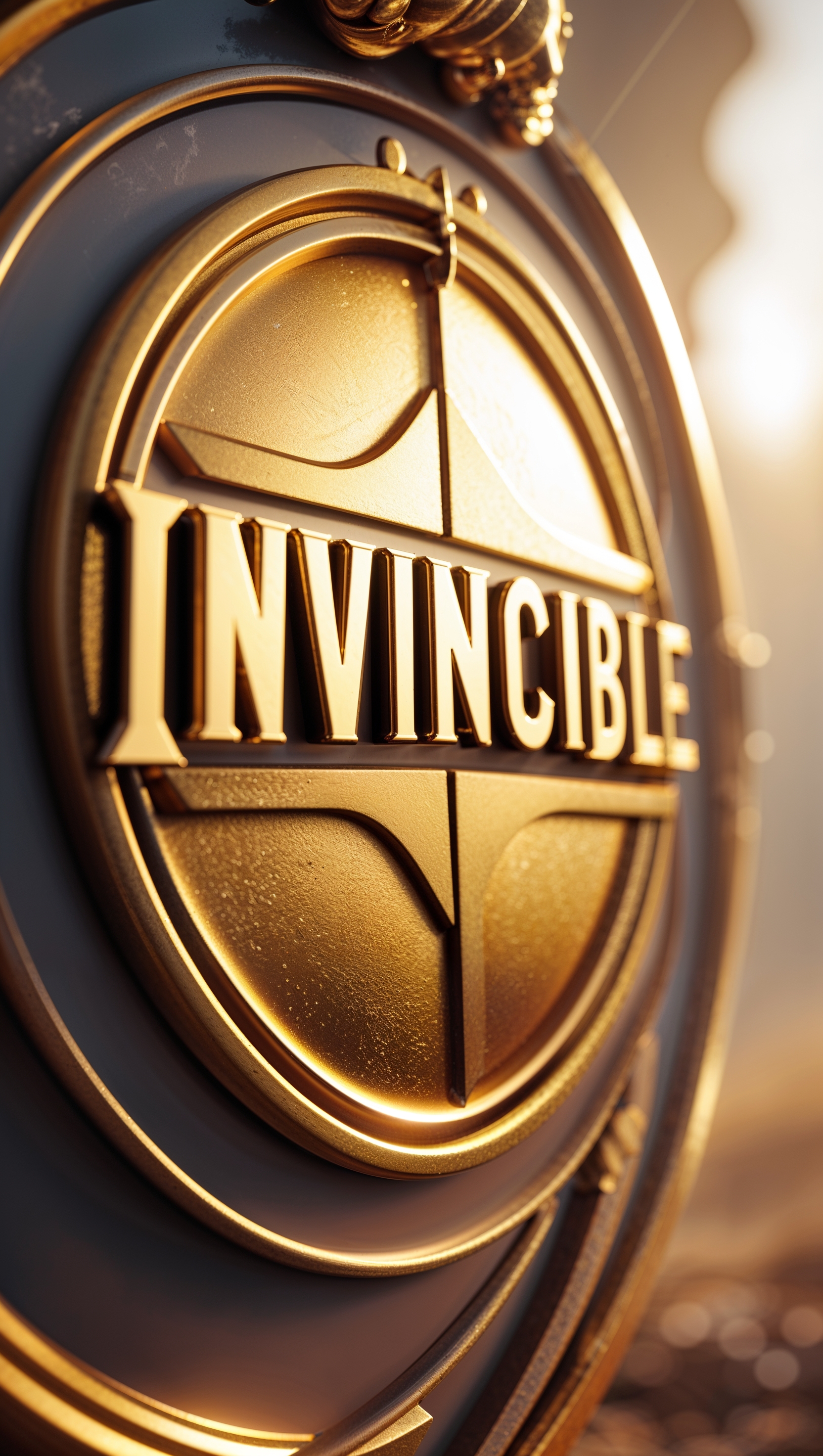 1664x2944 A golden emblem with the word "Invincible" in sleek 3D design – 4K iPhone