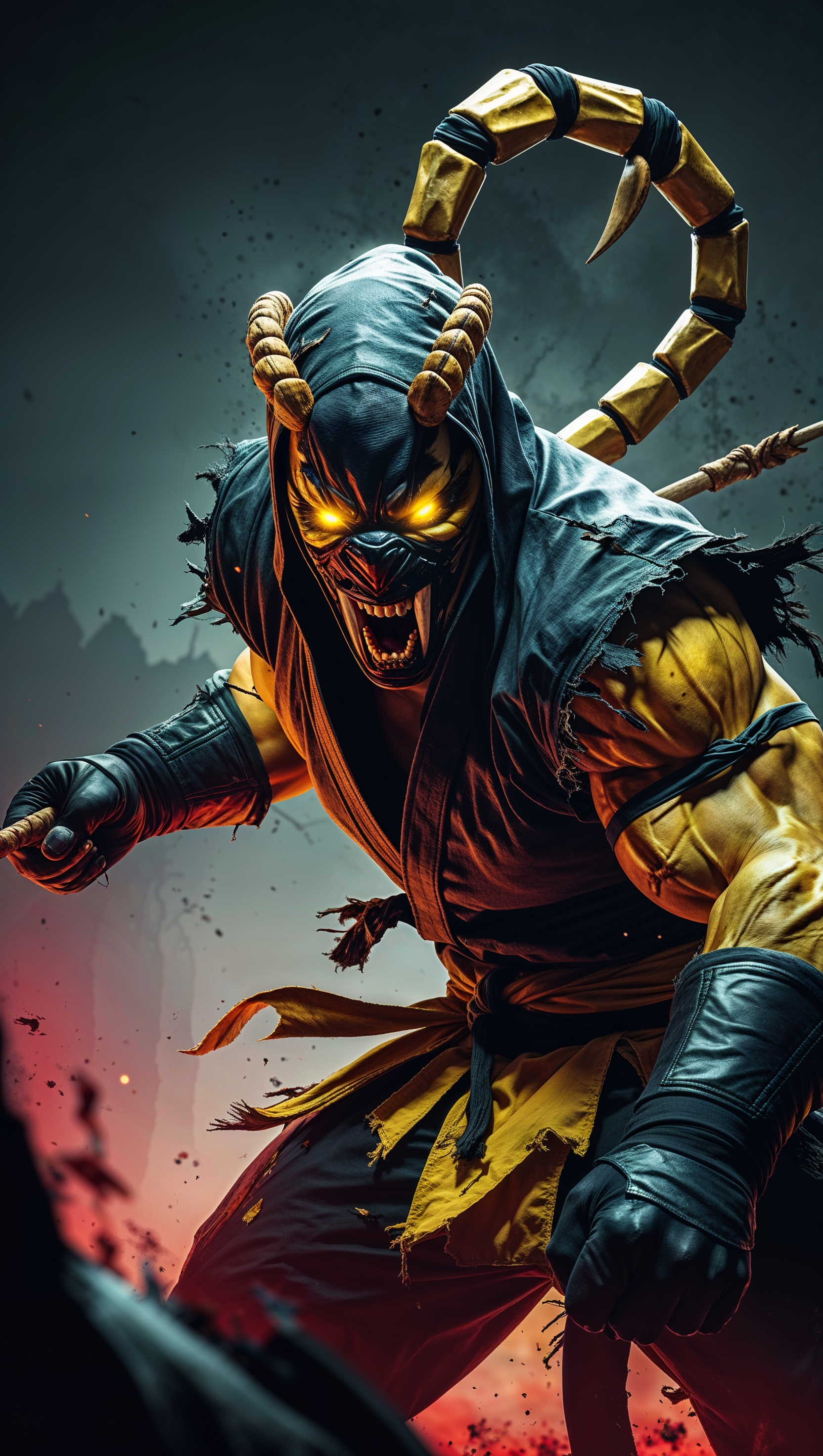 1664x2944 iPhone wallpaper featuring Scorpion attacking