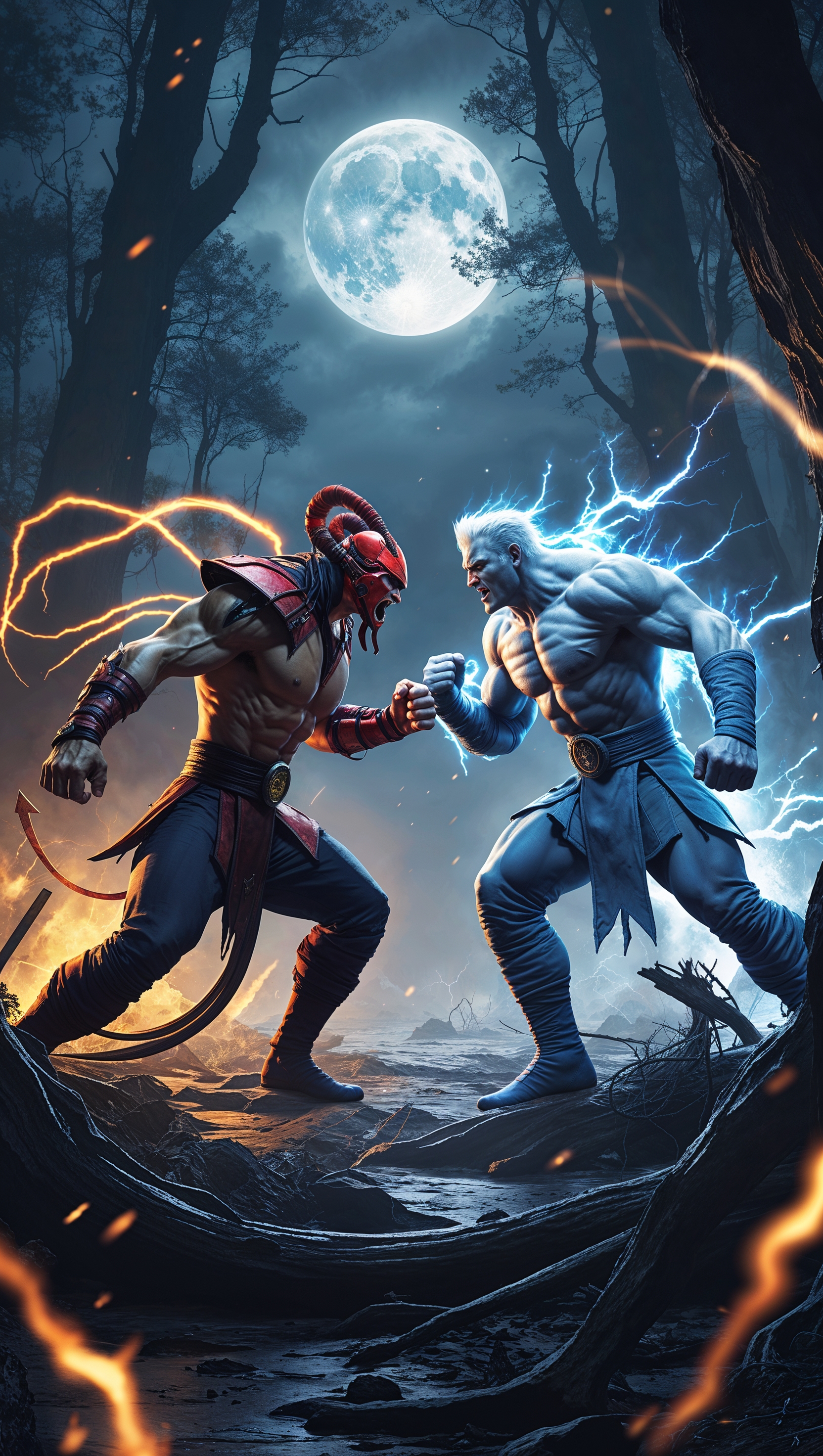 1664x2944 Mortal Kombat battle scene in forest iPhone wallpaper