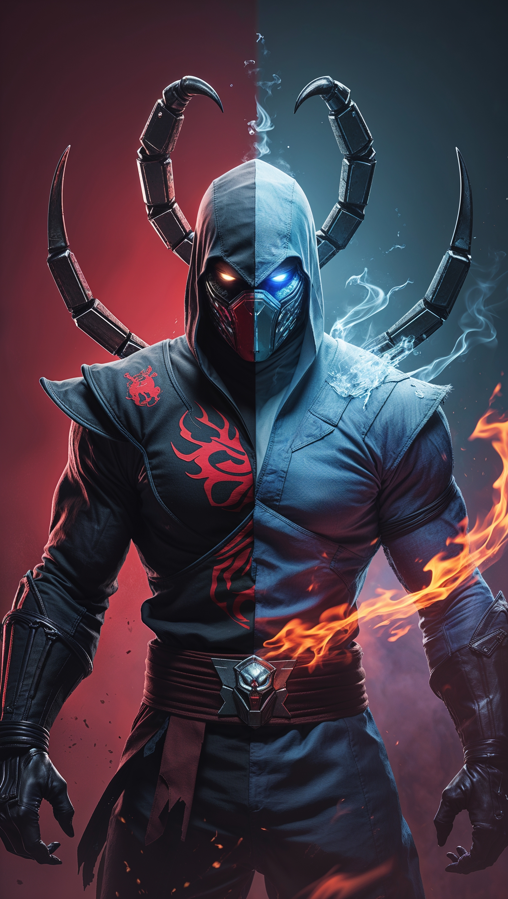 1664x2944 Scorpion and Sub-Zero combined characters iPhone wallpaper