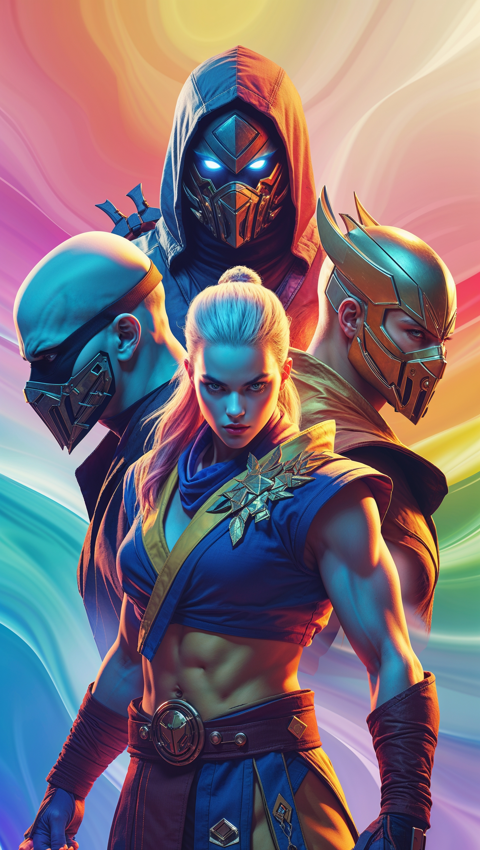 1664x2944 Mortal Kombat characters combined with rainbow background iPhone wallpaper