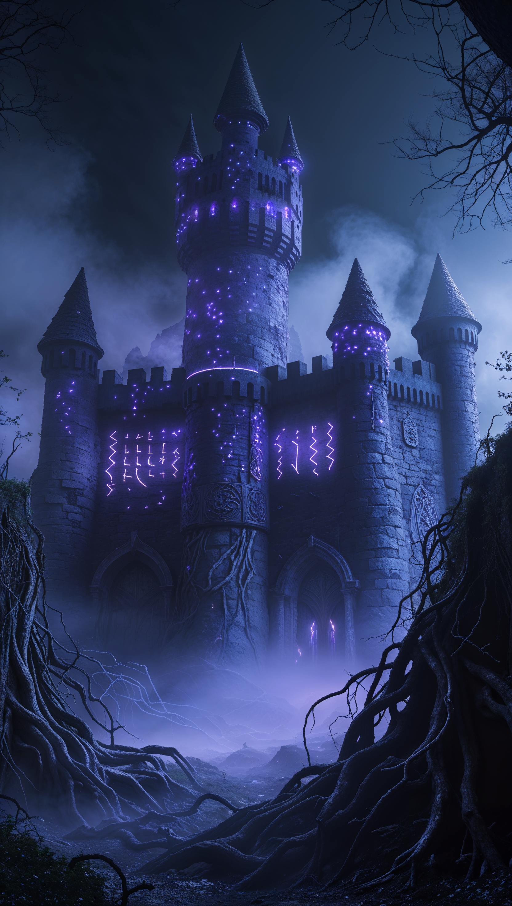Dark fantasy castle from Elden Ring at night with glowing lights 1664x2944 Dark fantasy castle from Elden Ring at night with glowing lights