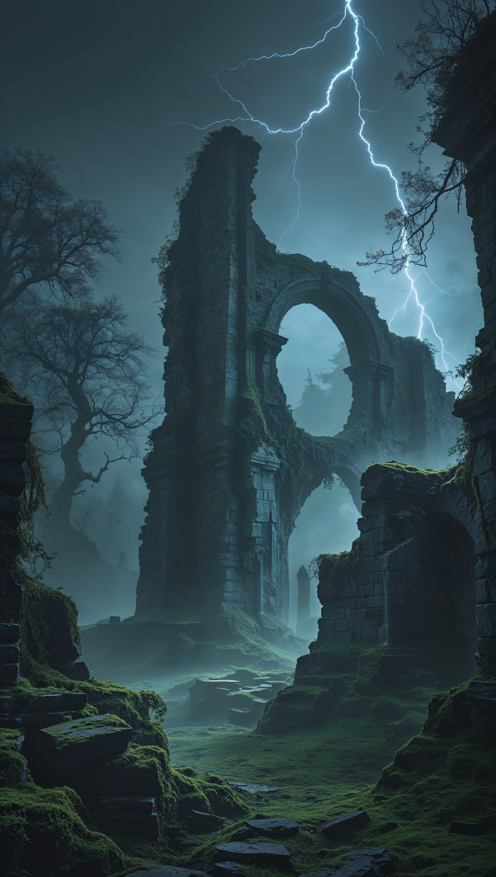 Ruins of Elden Ring with fog and lightning, dark atmosphere 1664x2944 Ruins of Elden Ring with fog and lightning, dark atmosphere