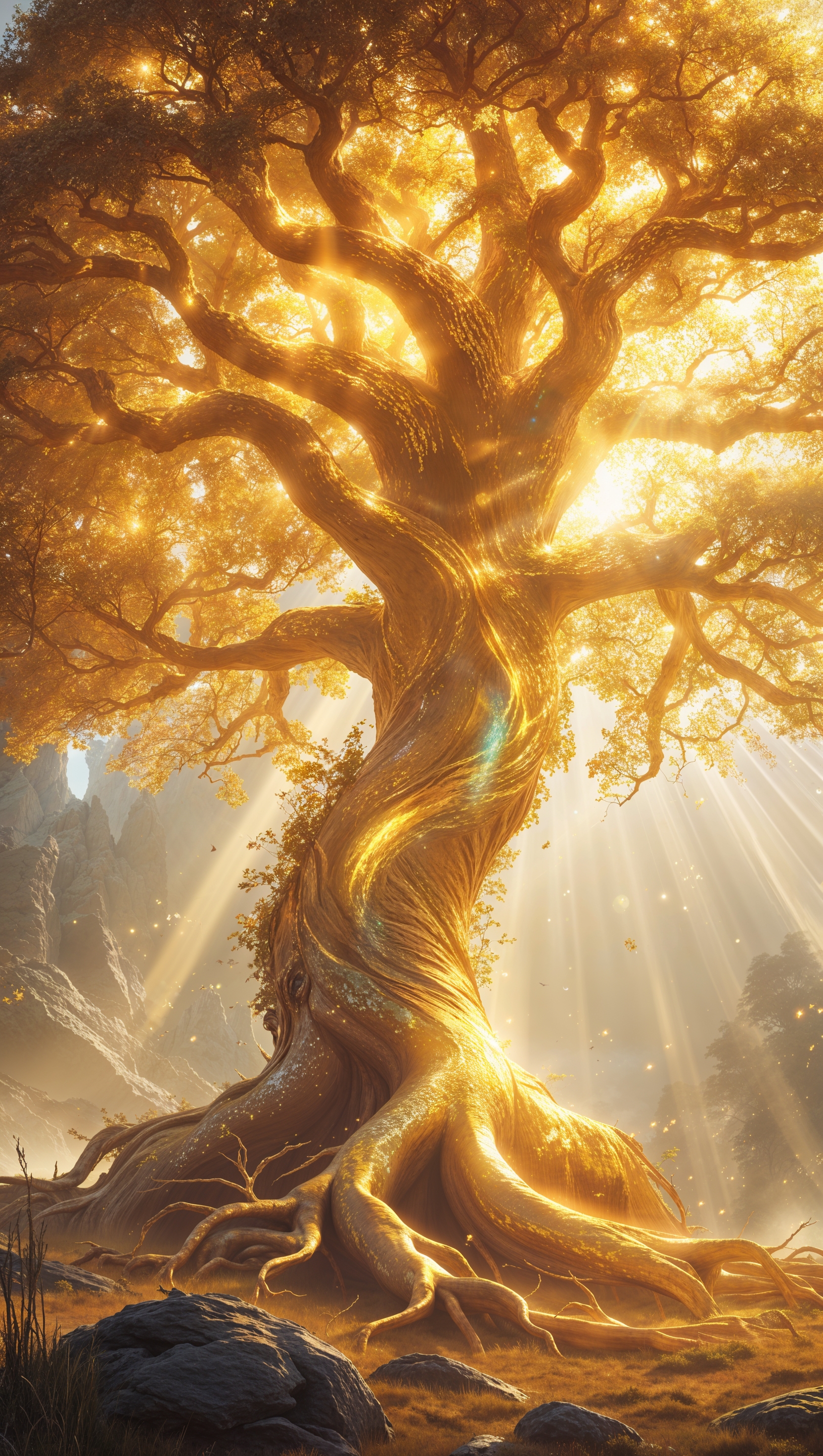 Golden tree from Elden Ring with sunrays, spiritual and epic vibe 1664x2944 Golden tree from Elden Ring with sunrays, spiritual and epic vibe