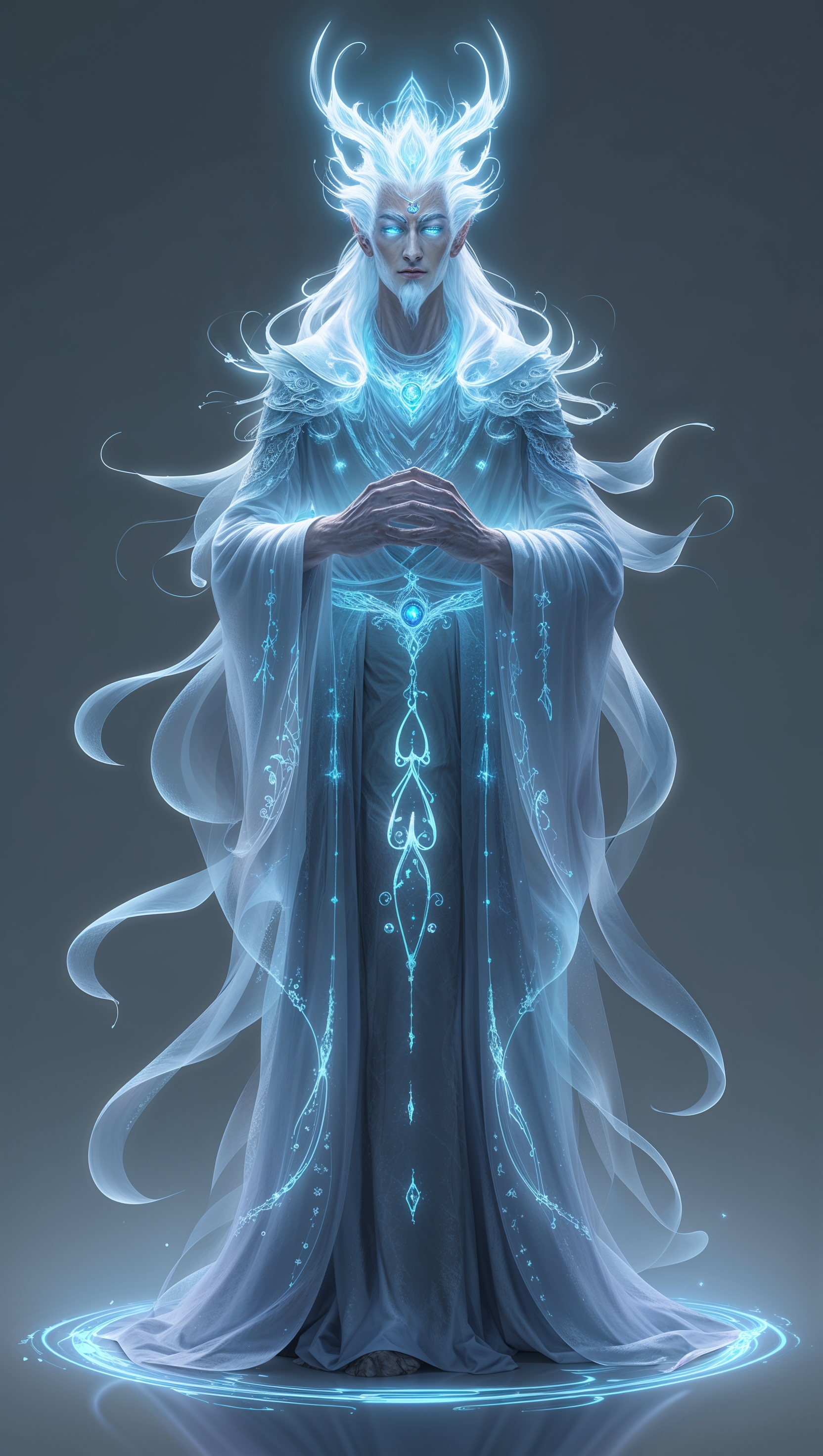 Ancestral spirit from Elden Ring glowing in blue aura, minimal background 1664x2944 Ancestral spirit from Elden Ring glowing in blue aura, minimal background