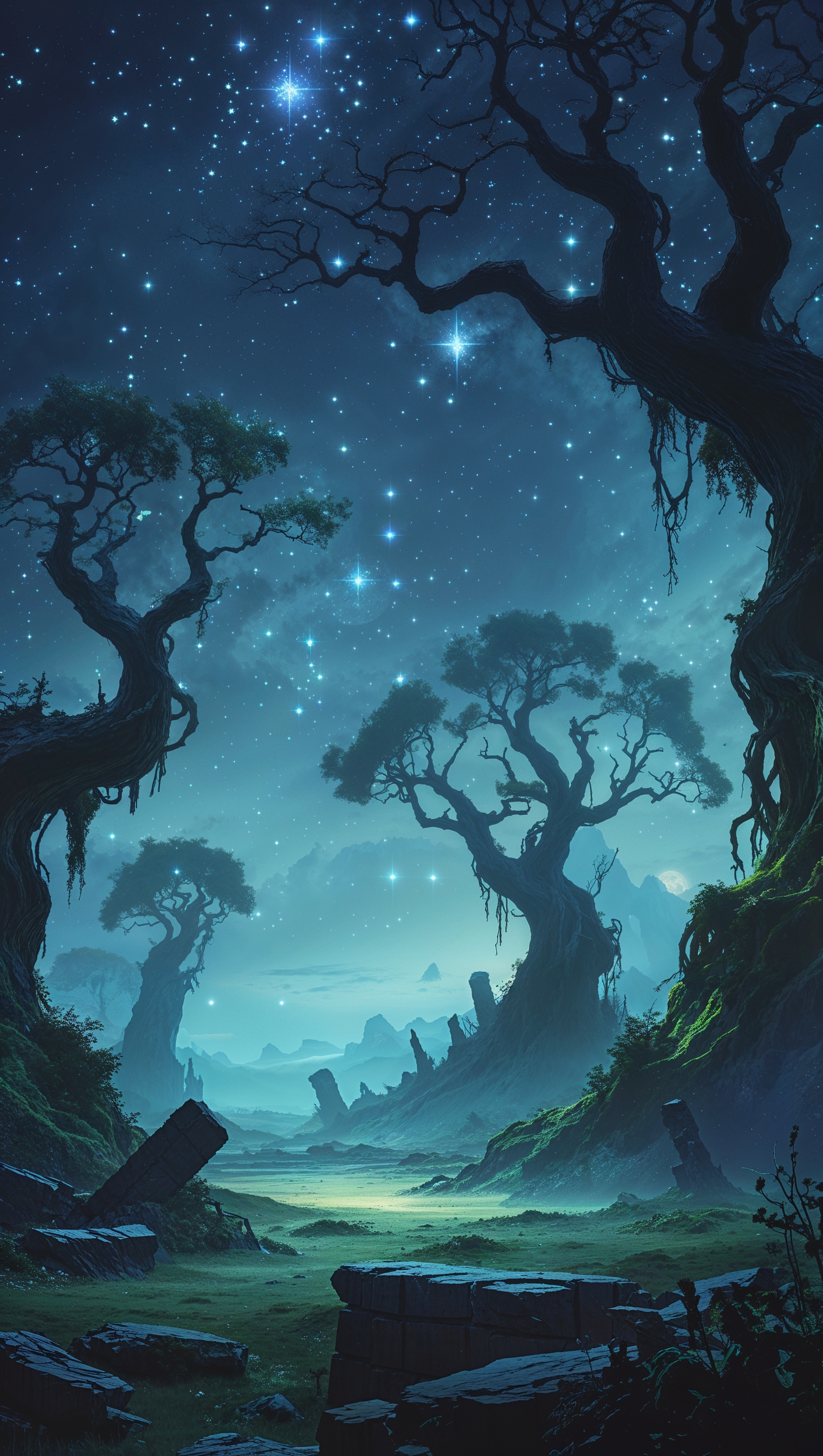 Celestial stars over the Elden Ring world, mystical and serene 1664x2944 Celestial stars over the Elden Ring world, mystical and serene