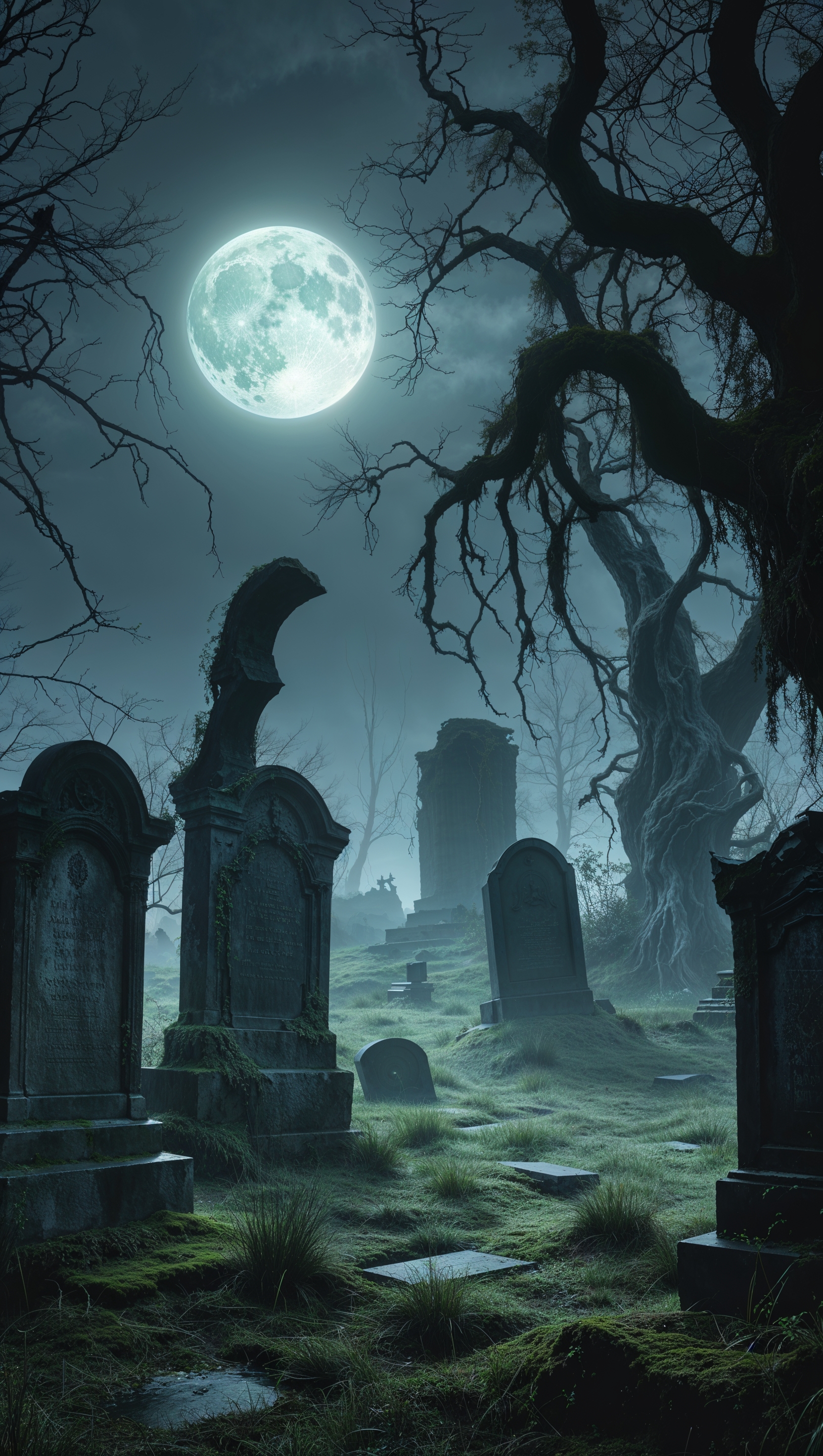 Moonlit graveyard with Elden Ring ruins, horror vibes 1664x2944 Moonlit graveyard with Elden Ring ruins, horror vibes