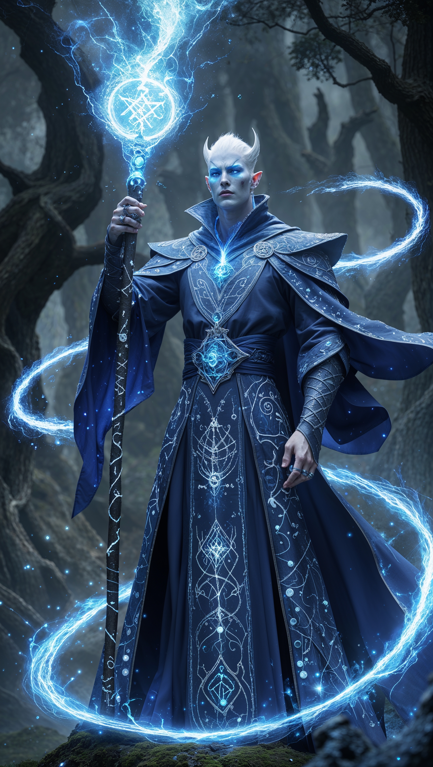 Sorcerer from Elden Ring casting blue magic, detailed style 1664x2944 Sorcerer from Elden Ring casting blue magic, detailed style