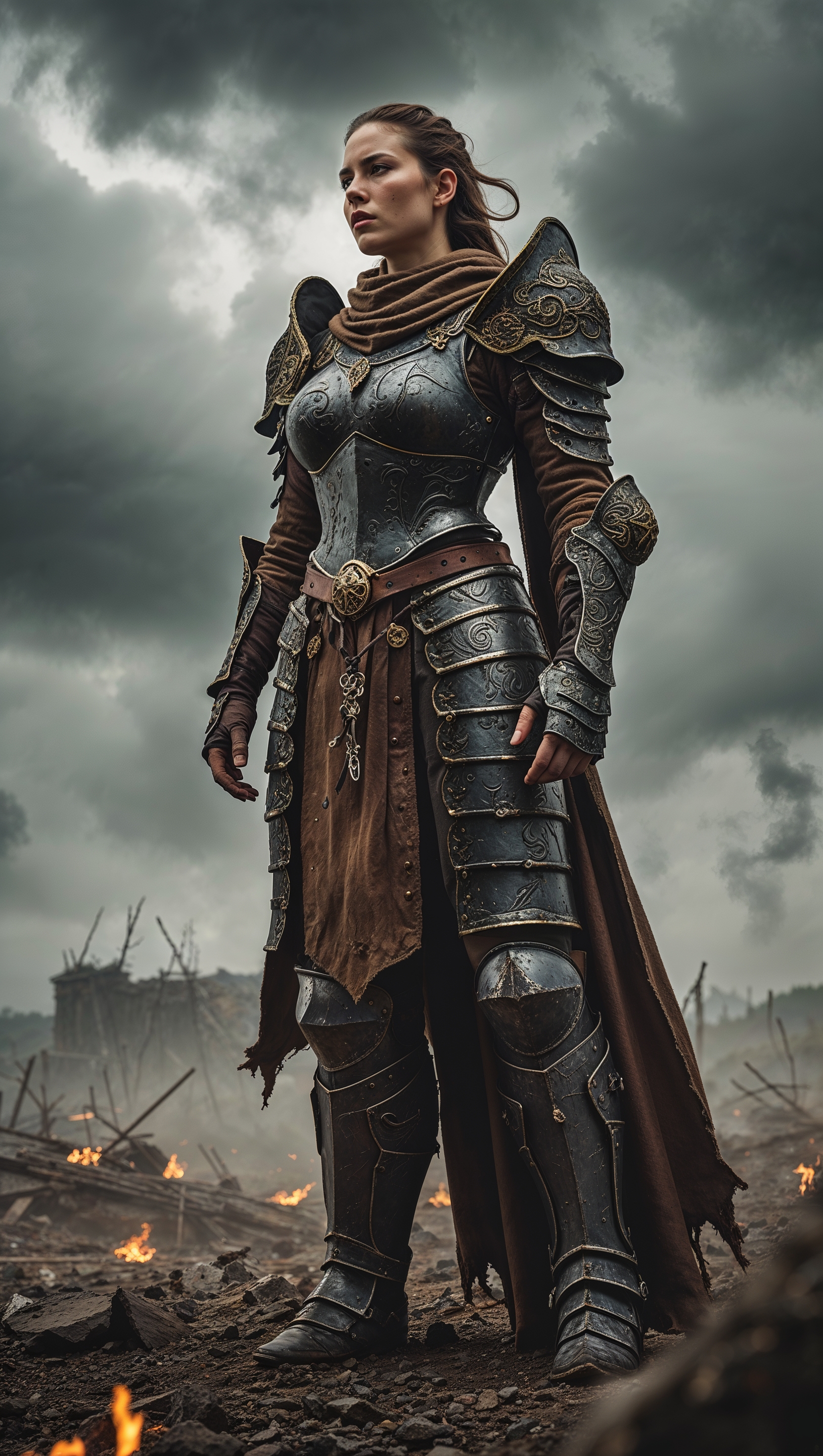 Female warrior standing on battlefield, Elden Ring armor, cloudy sky 1664x2944 Female warrior standing on battlefield, Elden Ring armor, cloudy sky