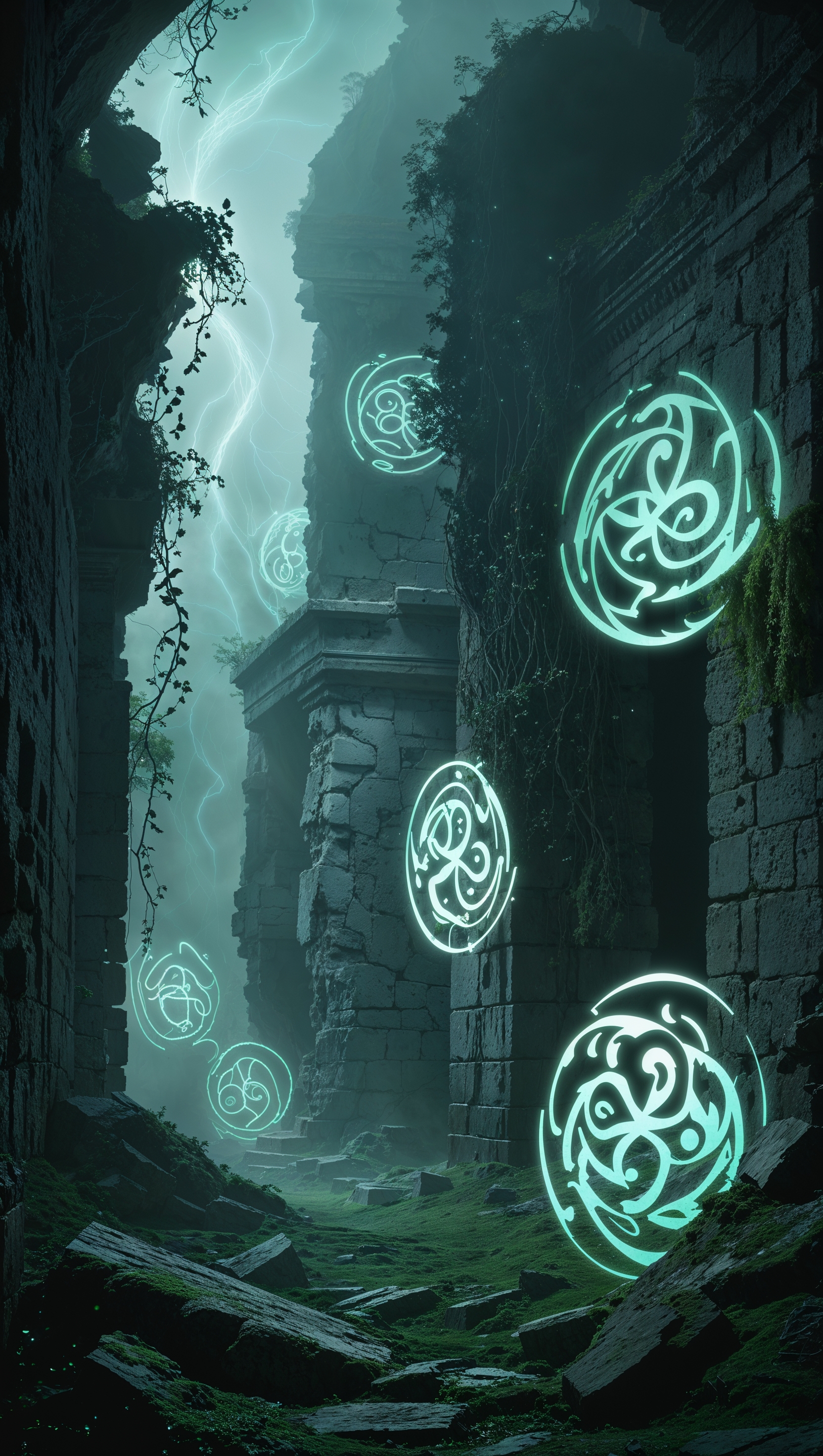Ancient ruins and magical glyphs glowing in the dark 1664x2944 Ancient ruins and magical glyphs glowing in the dark