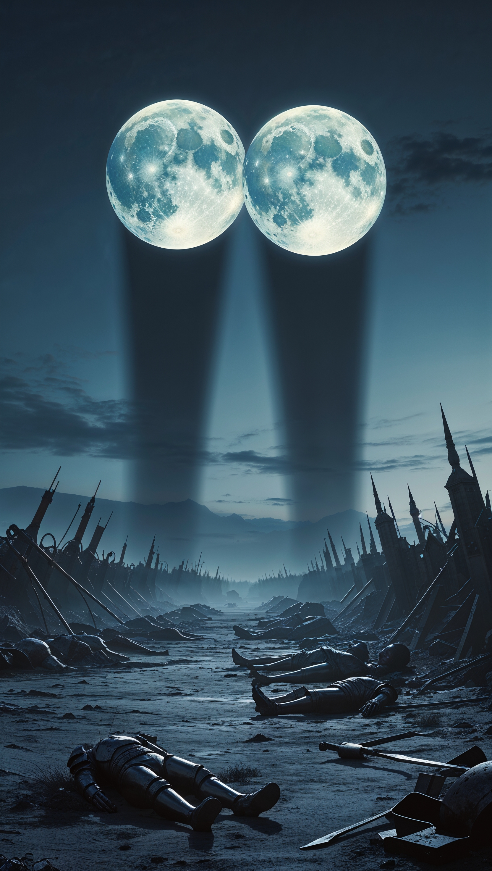 Elden Ring twin moons over a quiet battlefield, dramatic shadows 1664x2944 Elden Ring twin moons over a quiet battlefield, dramatic shadows