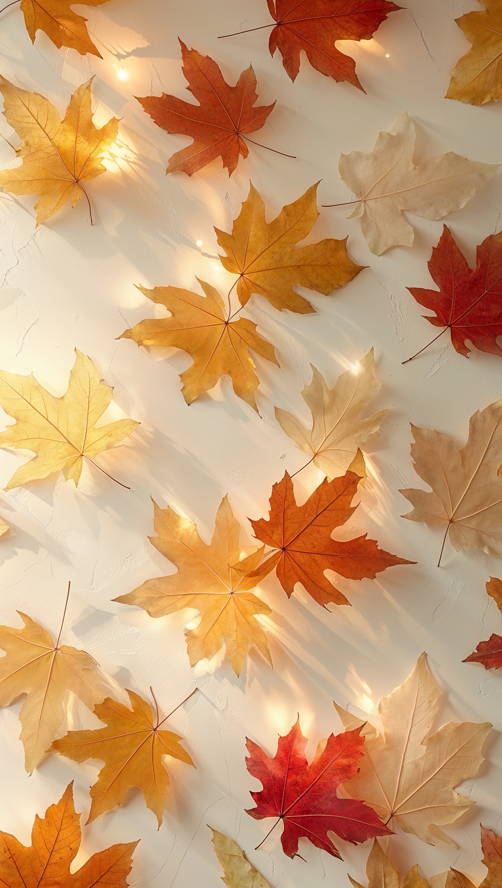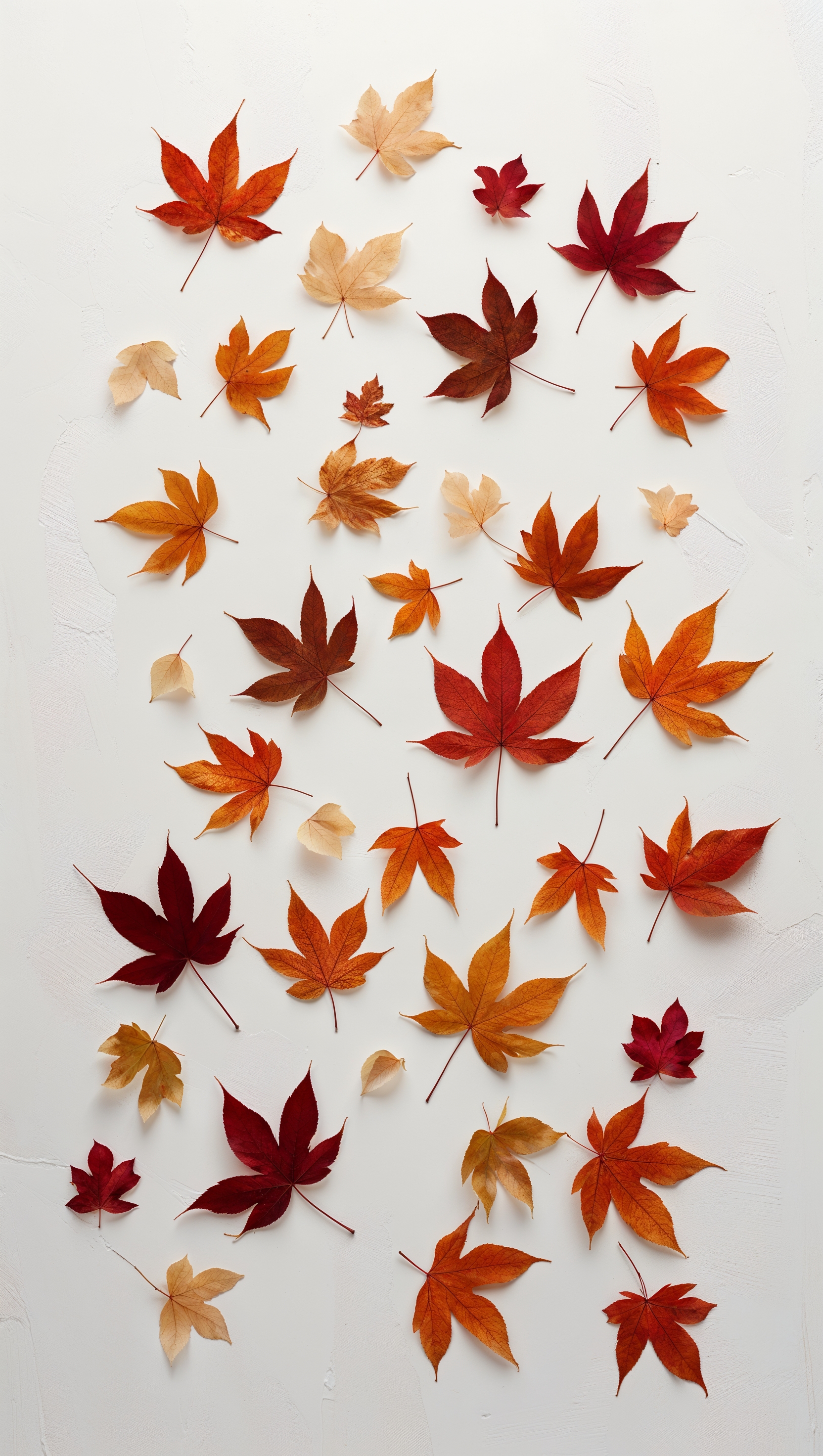 1664x2944 Minimalist autumn leaves scattered on a white background, clean and modern