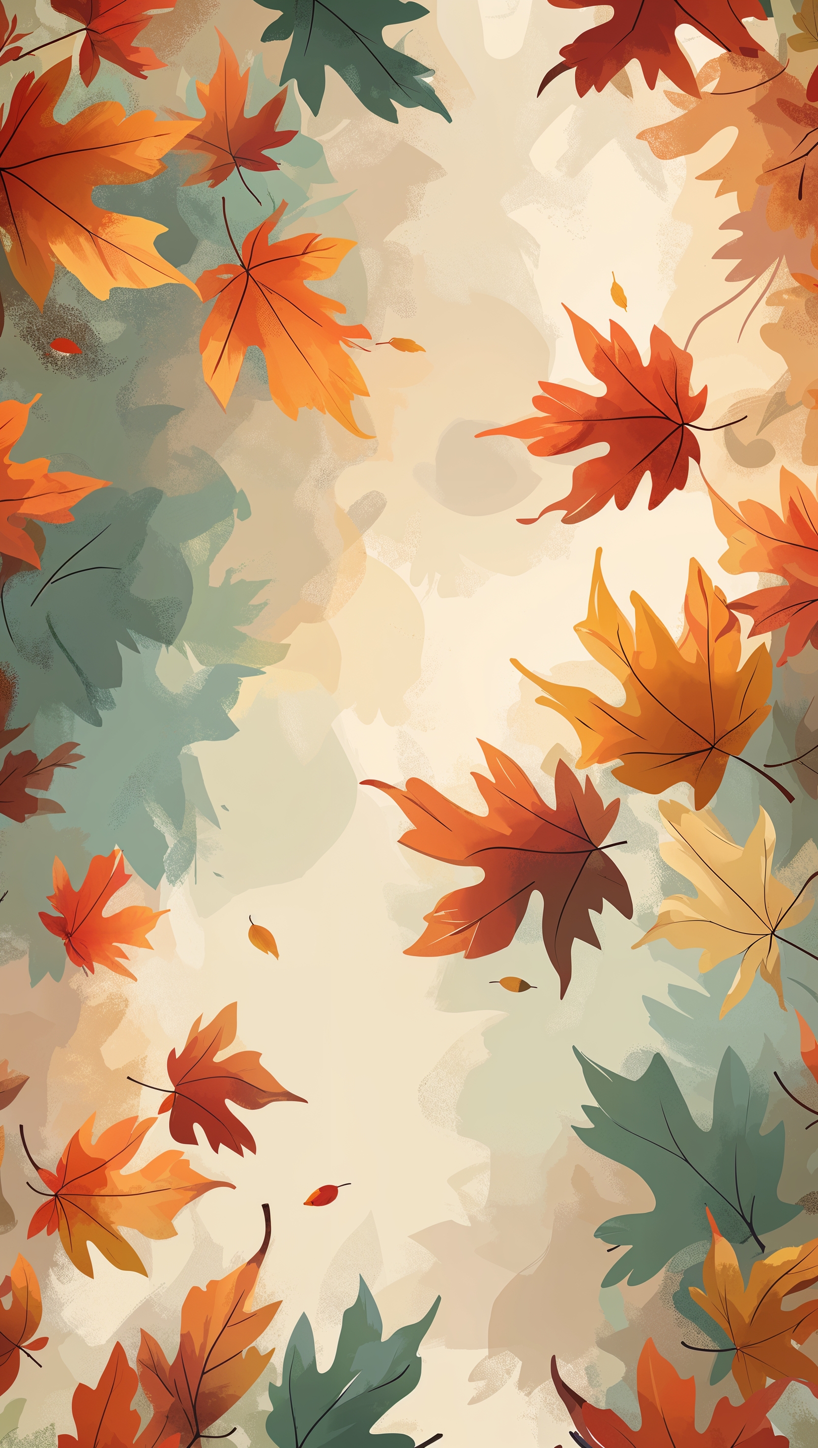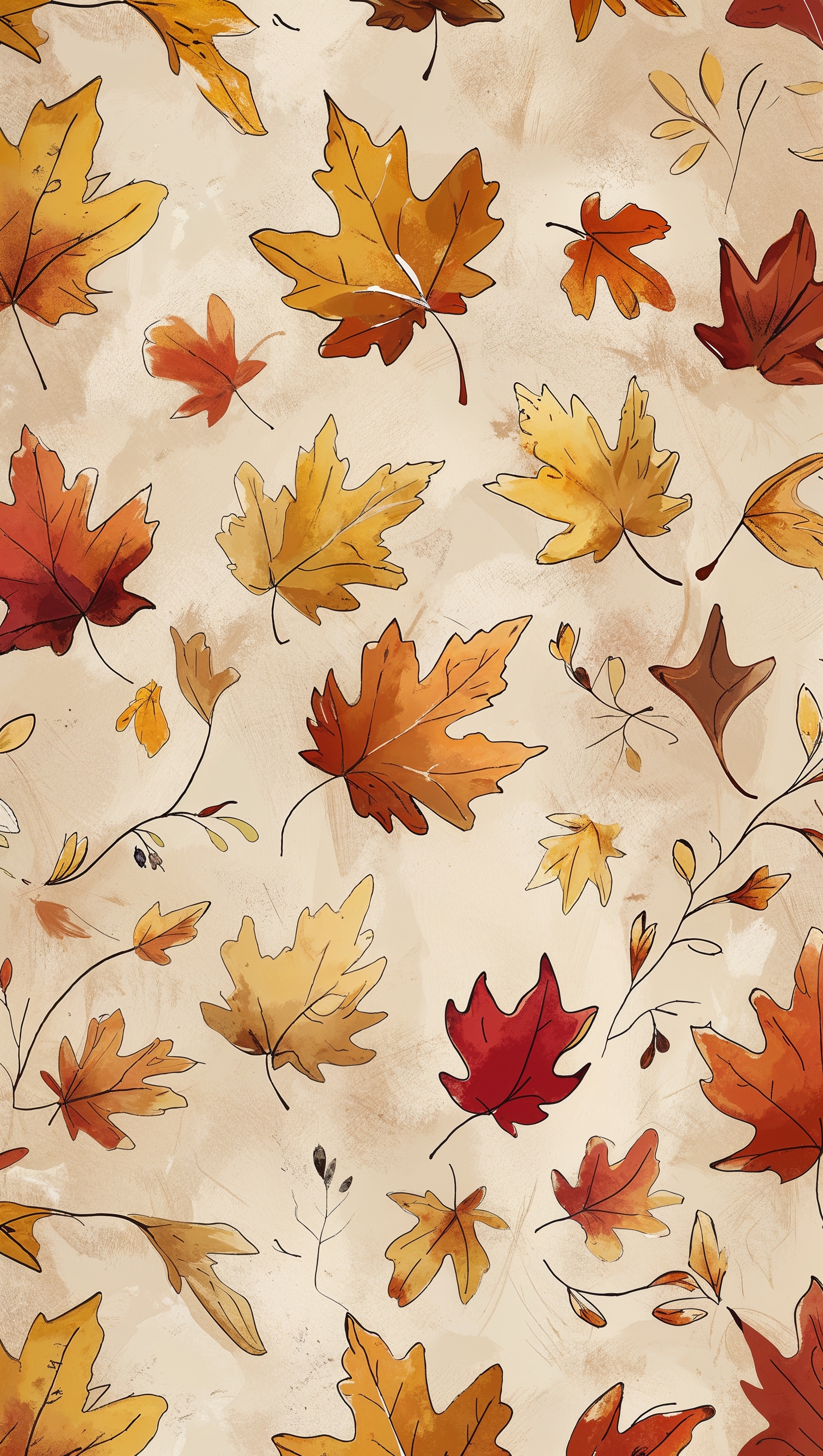 1664x2944 Vertical iPhone wallpaper with hand-drawn fall leaves in vintage colors