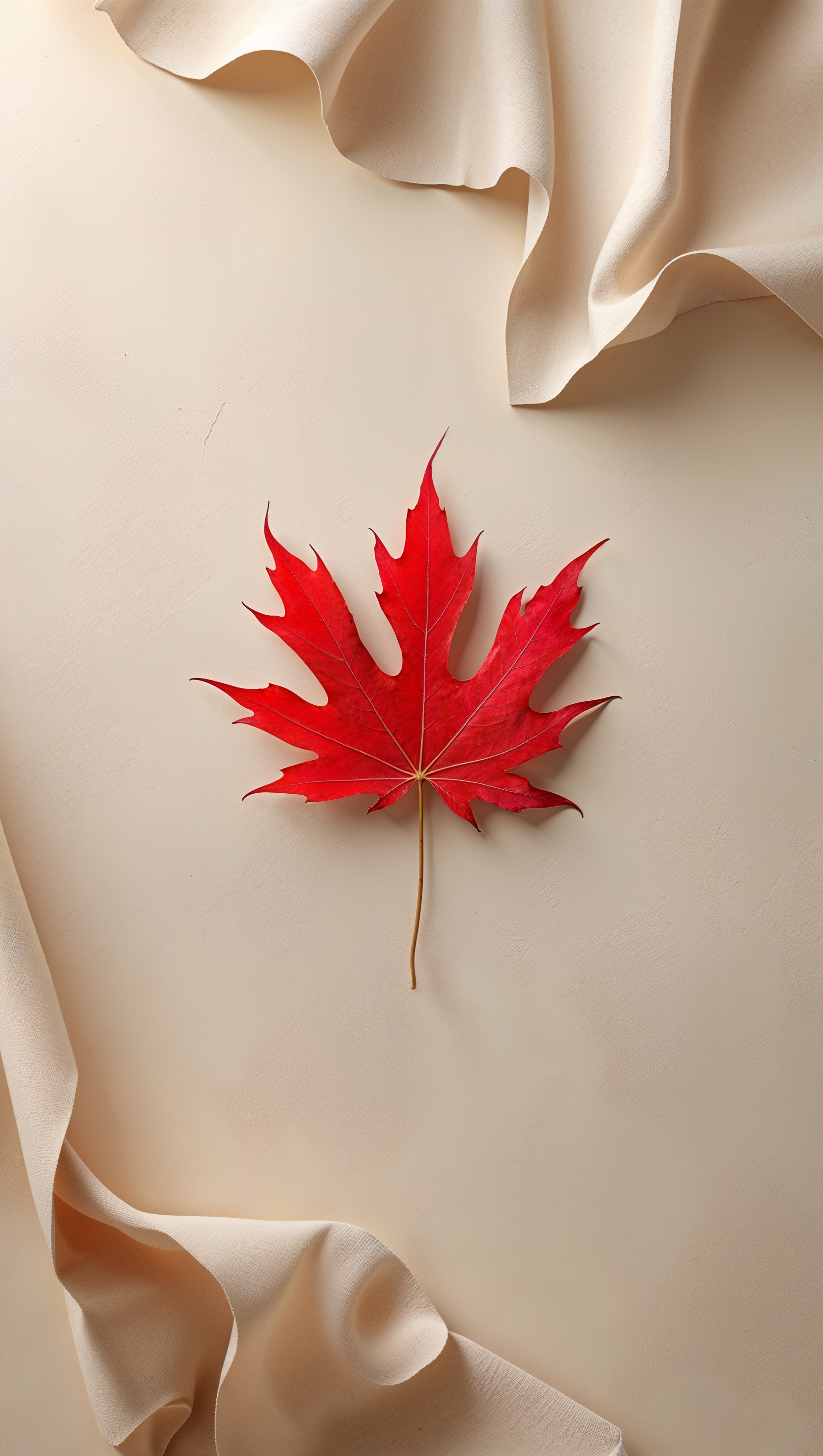 1664x2944 Minimal design with one central red maple leaf on beige canvas