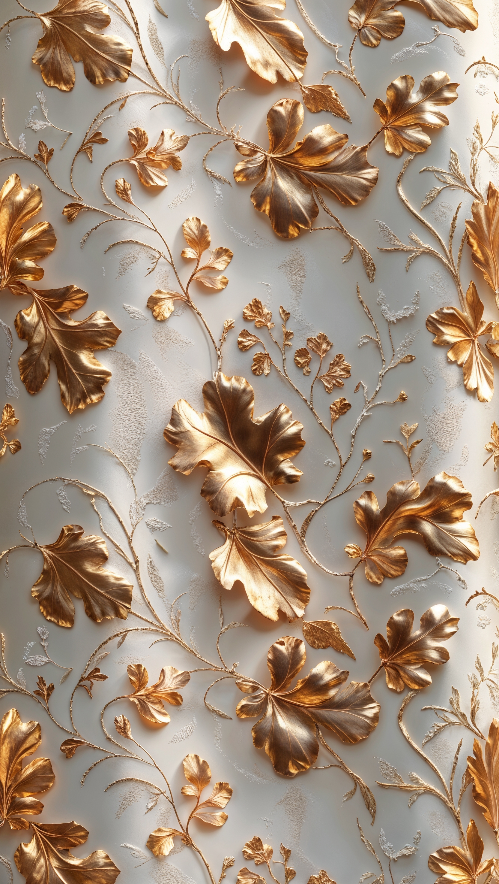 1664x2944 Elegant gold and bronze leaf pattern on soft off-white background