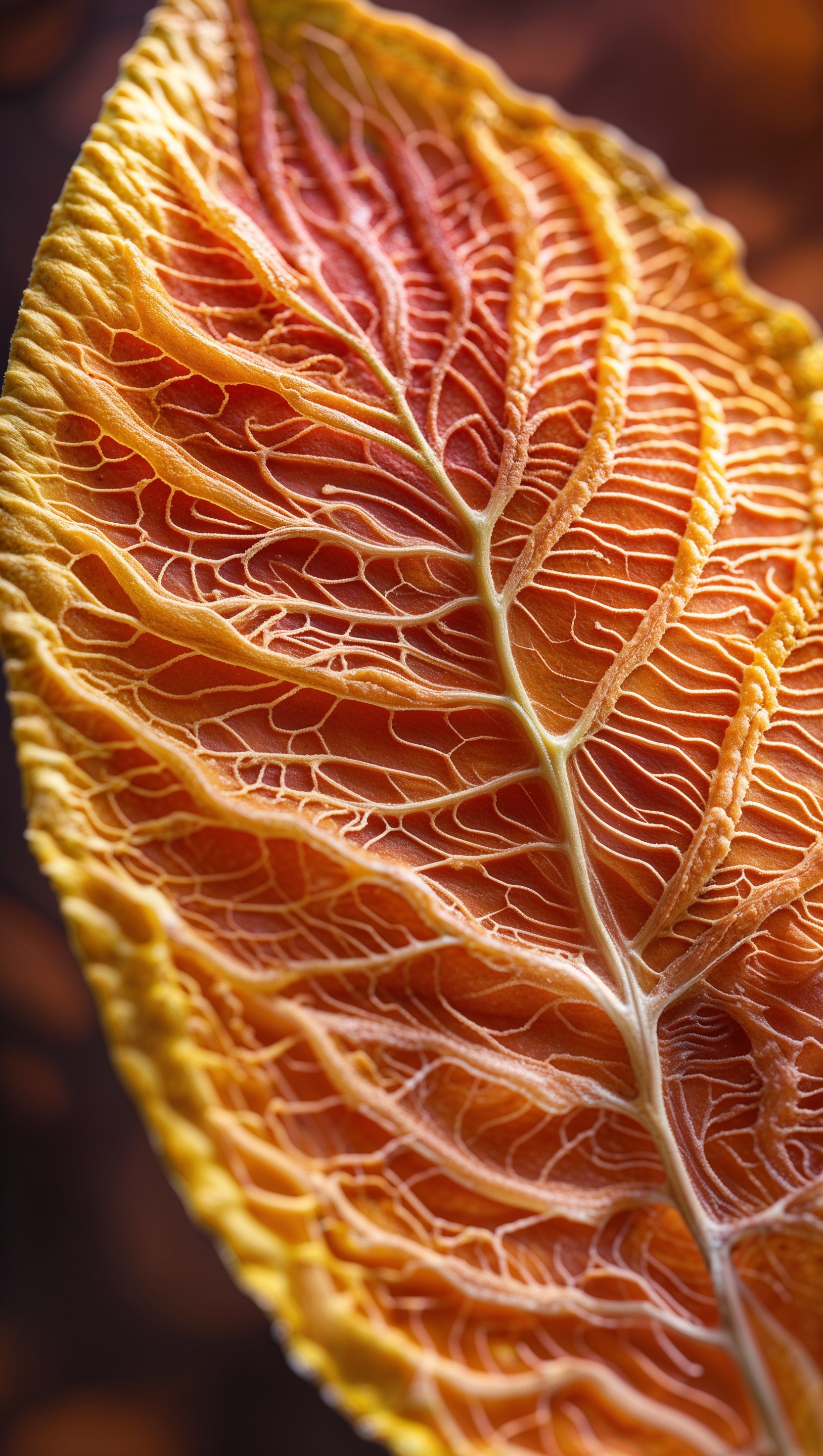 1664x2944 Macro shot of textured orange leaf veins, abstract natural pattern
