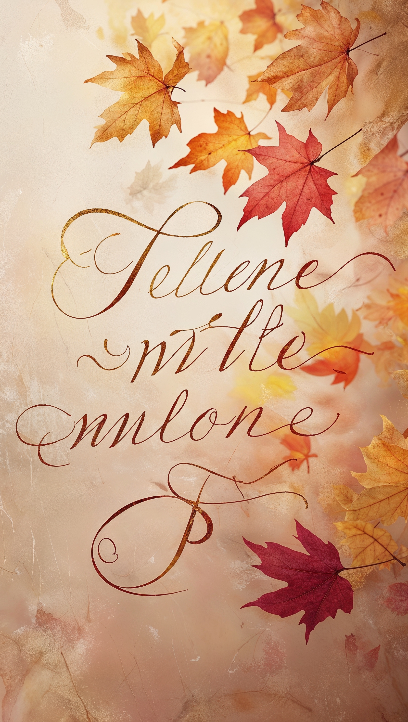 1664x2944 Autumn quote in cursive over faded leaf background, warm and personal