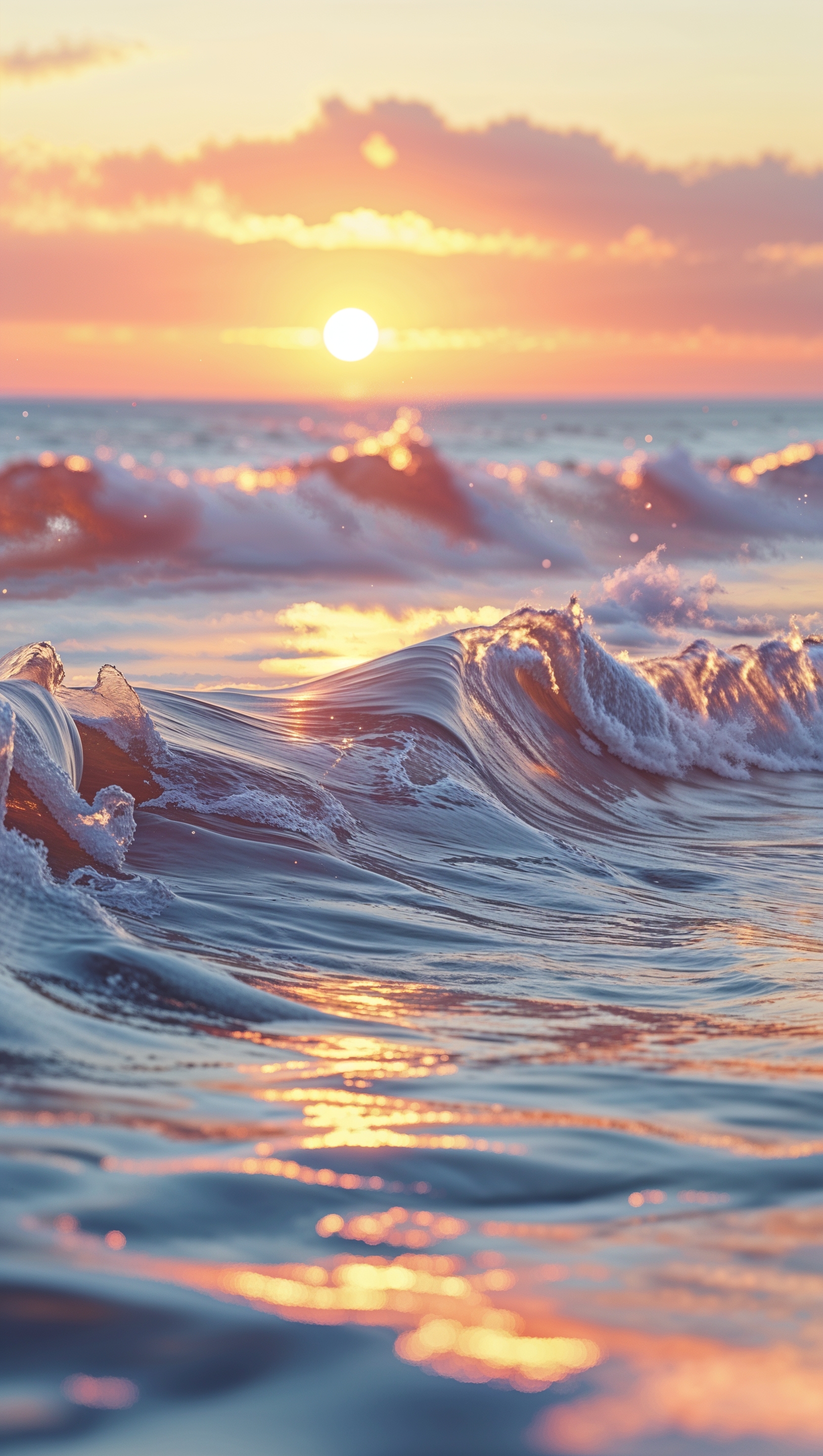 Peaceful ocean waves under a golden sunset, high resolution, vertical iPhone format 1664x2944 Peaceful ocean waves under a golden sunset, high resolution, vertical iPhone format