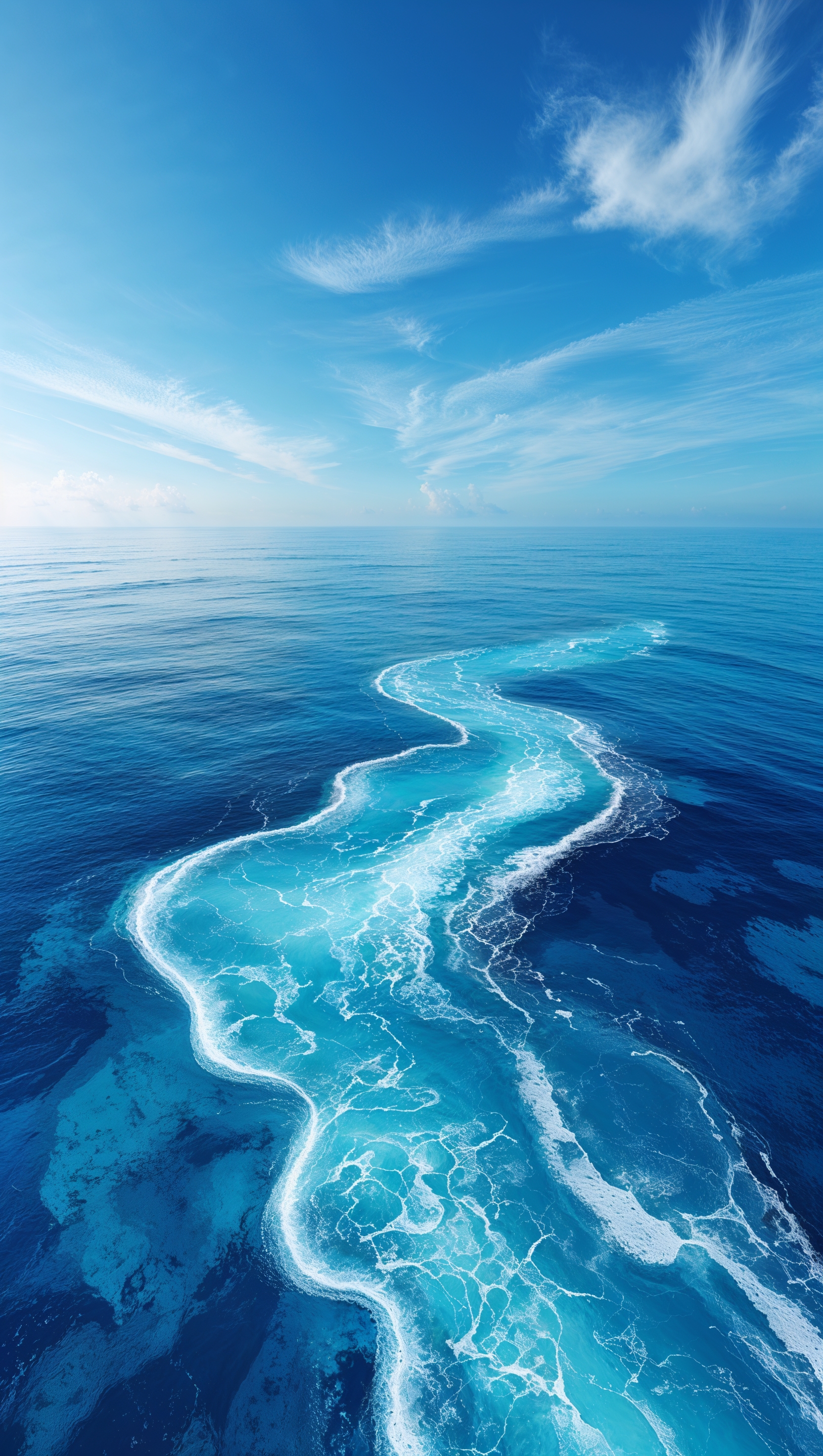 Aerial view of deep blue ocean with white foamy waves, clean minimalist style 1664x2944 Aerial view of deep blue ocean with white foamy waves, clean minimalist style