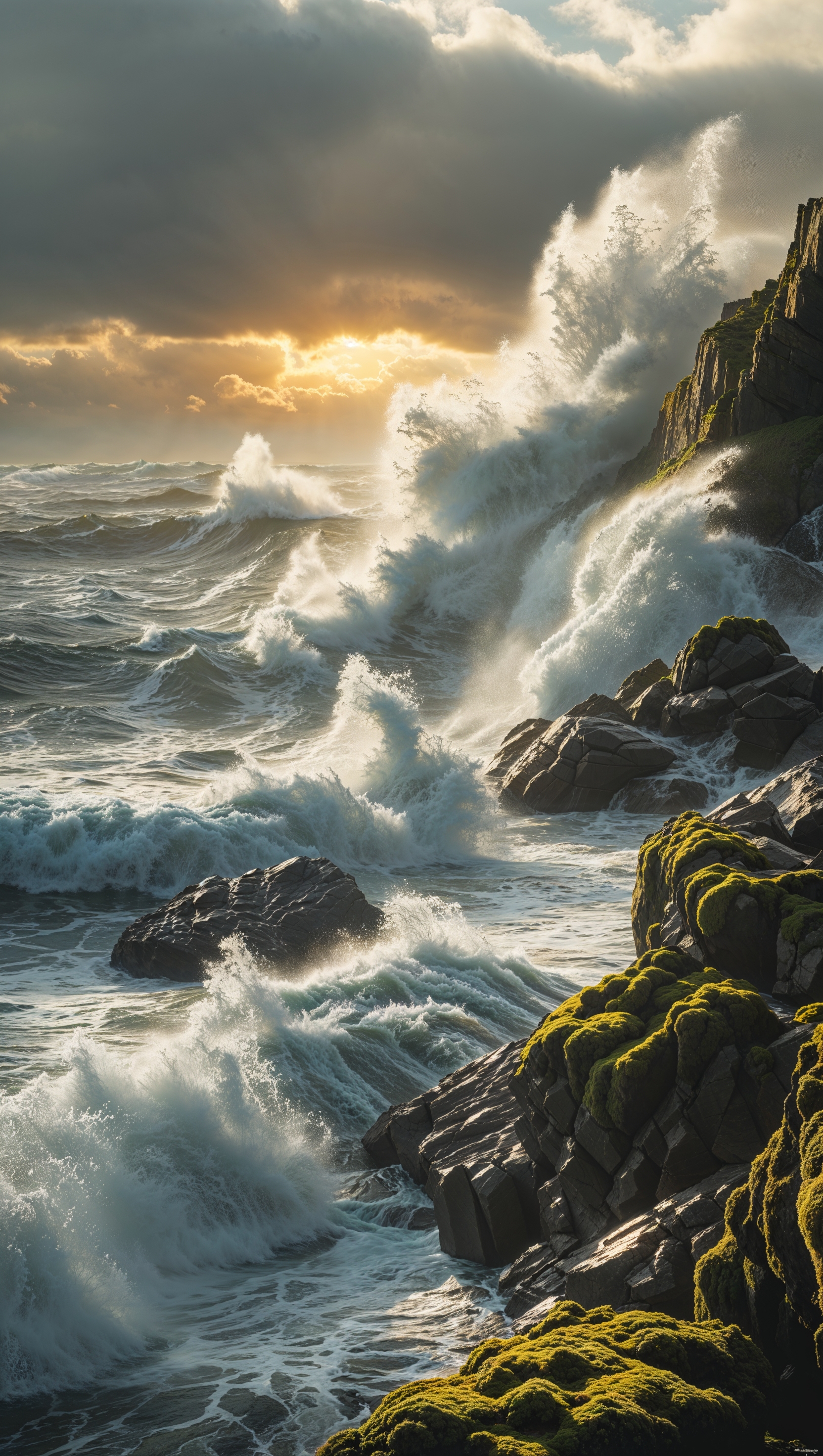 Waves crashing dramatically on rocks, cinematic and dynamic scene 1664x2944 Waves crashing dramatically on rocks, cinematic and dynamic scene