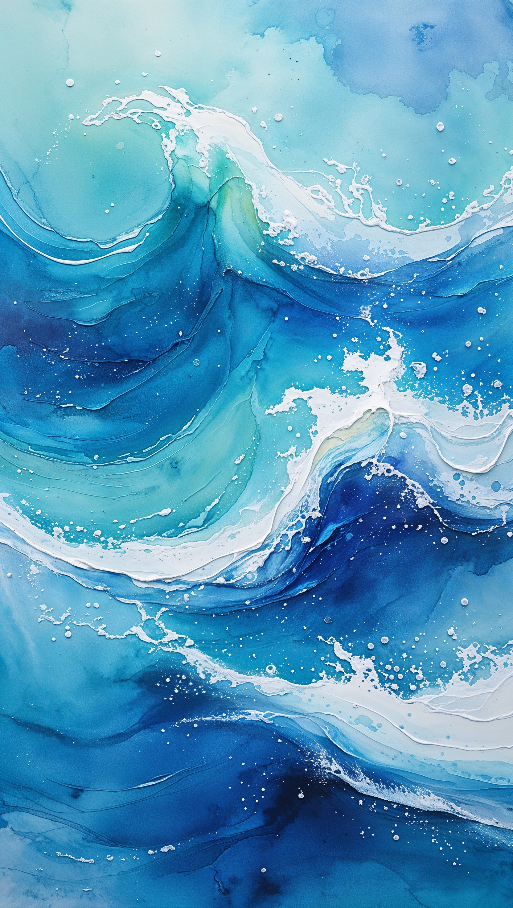 Abstract ocean watercolor with soft blue gradients and white textures 1664x2944 Abstract ocean watercolor with soft blue gradients and white textures
