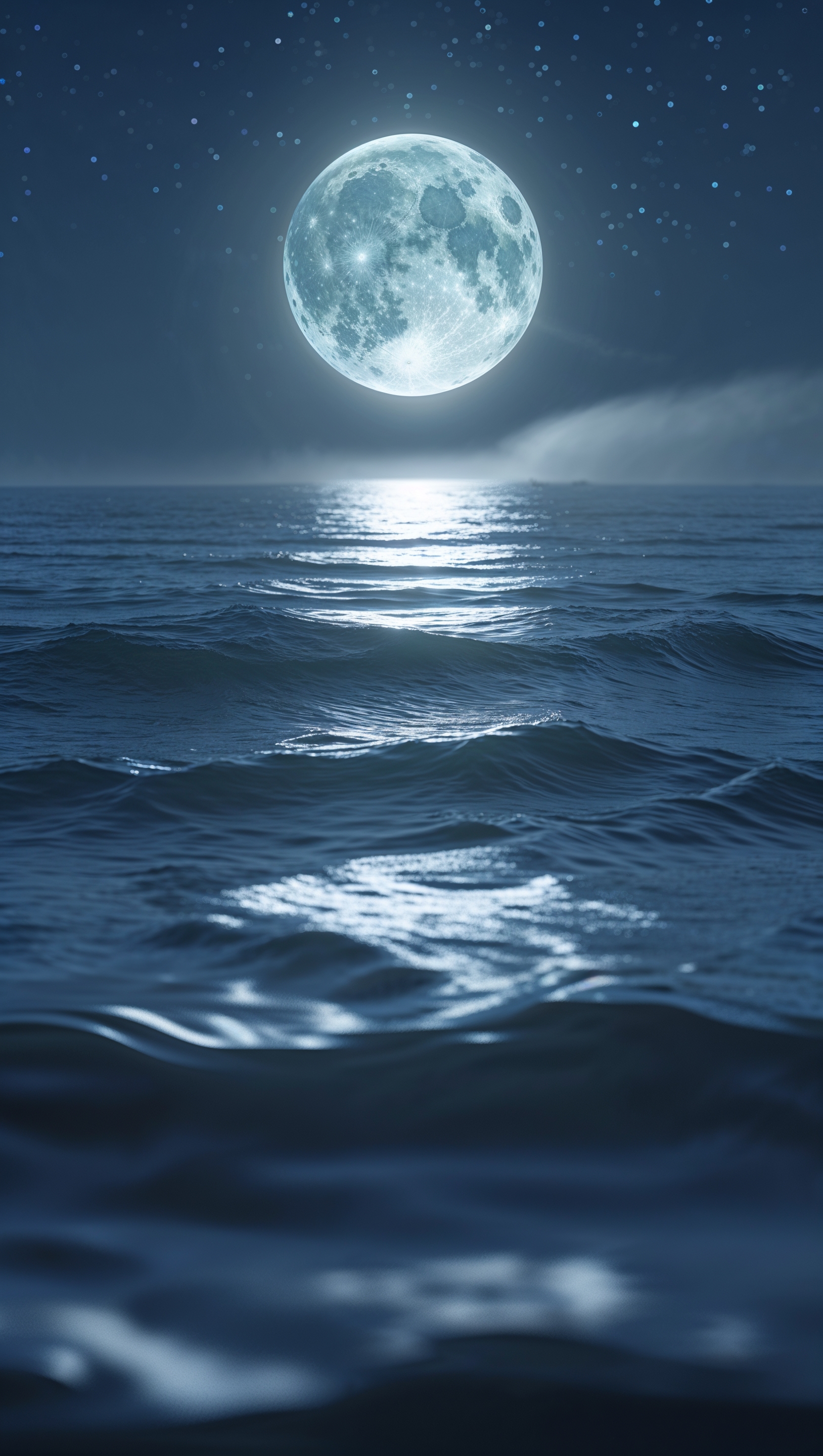 Nighttime ocean with moonlight reflecting on the waves, dreamy atmosphere 1664x2944 Nighttime ocean with moonlight reflecting on the waves, dreamy atmosphere