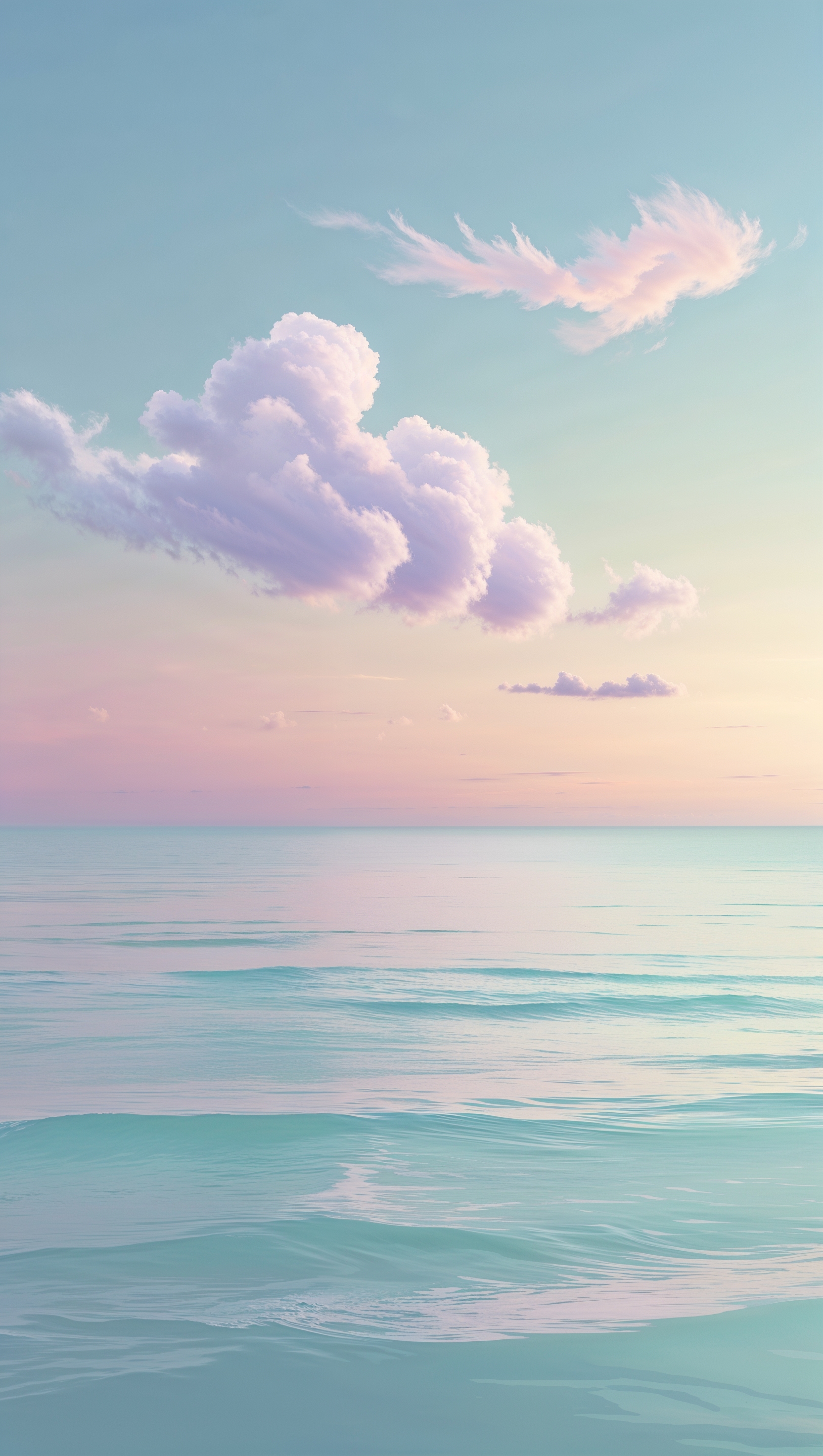 Pastel ocean waves blending into a dreamy sky, soft gradient transitions 1664x2944 Pastel ocean waves blending into a dreamy sky, soft gradient transitions