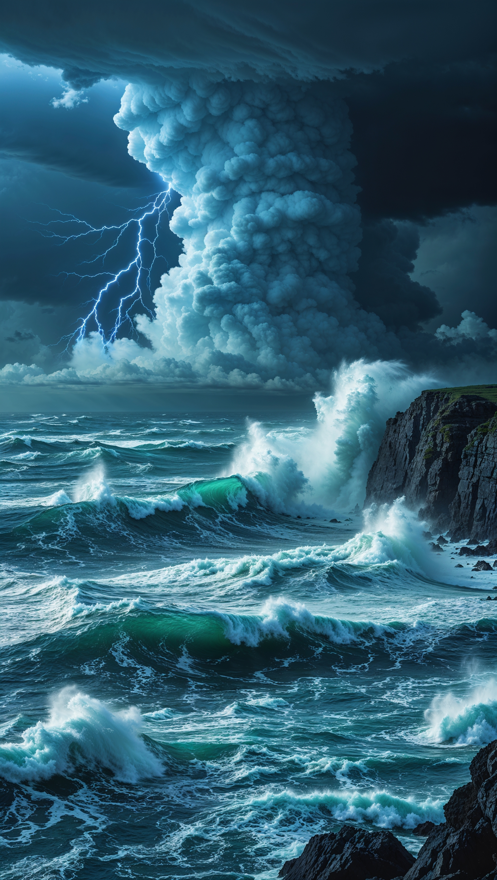 Stormy ocean with dark clouds and turbulent waves, dramatic and powerful 1664x2944 Stormy ocean with dark clouds and turbulent waves, dramatic and powerful